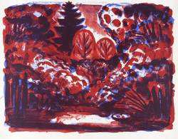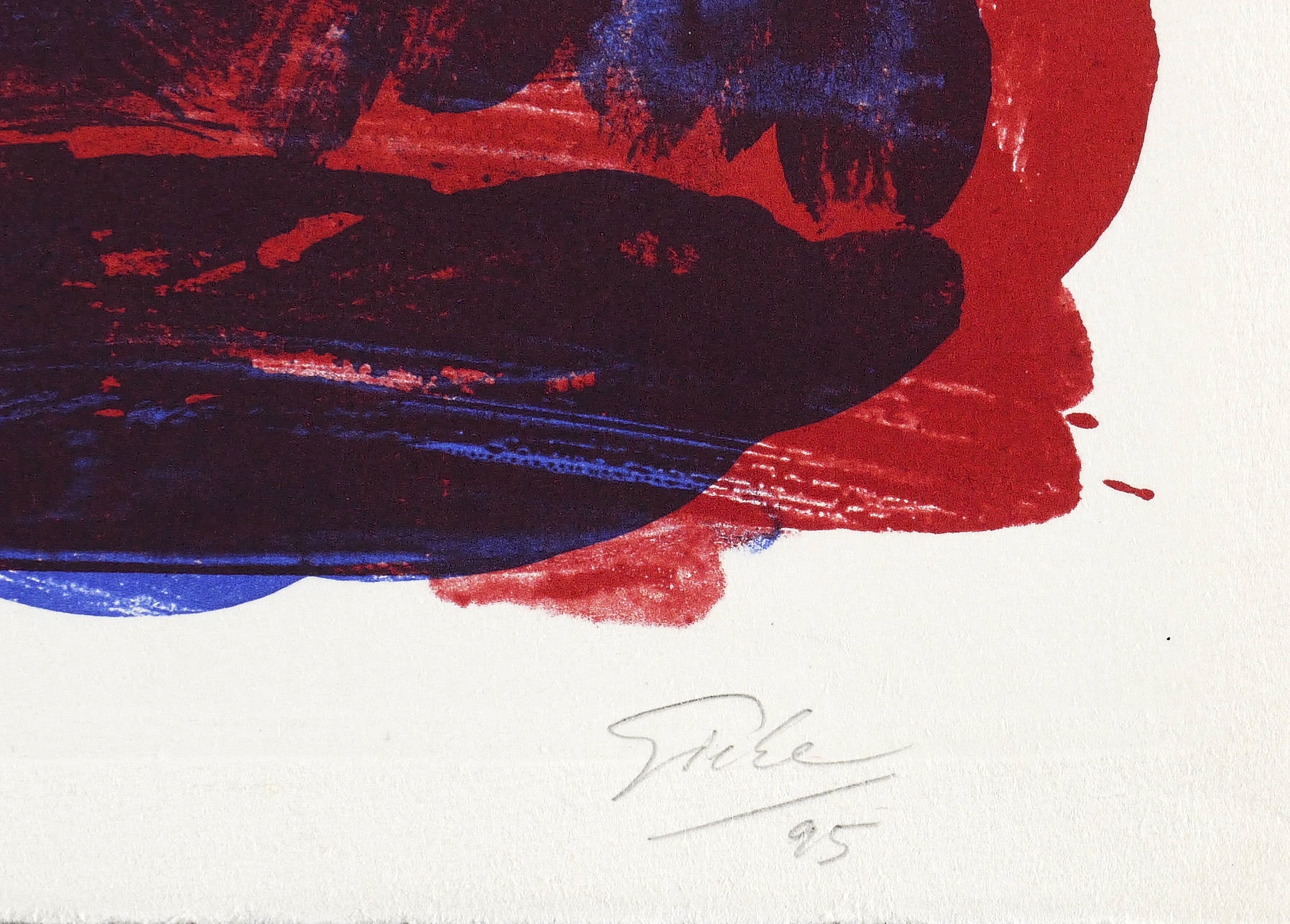 1995. Farblithografie / Kreidelithografie, in Rot & Blau, auf schwerem hellchamois Hahnemühle. – Originale Künstlergrafik, von Hubertus Giebe. – Auflage Exemplar Nr. 3/30. – 64,3 x 82,0 cm (Darstellung / Stein), 67 x 86 cm (Blatt).