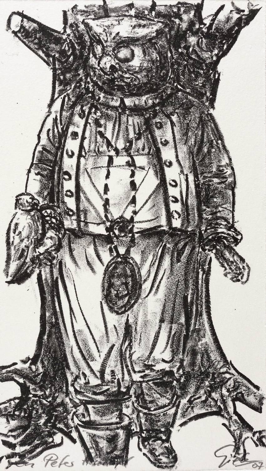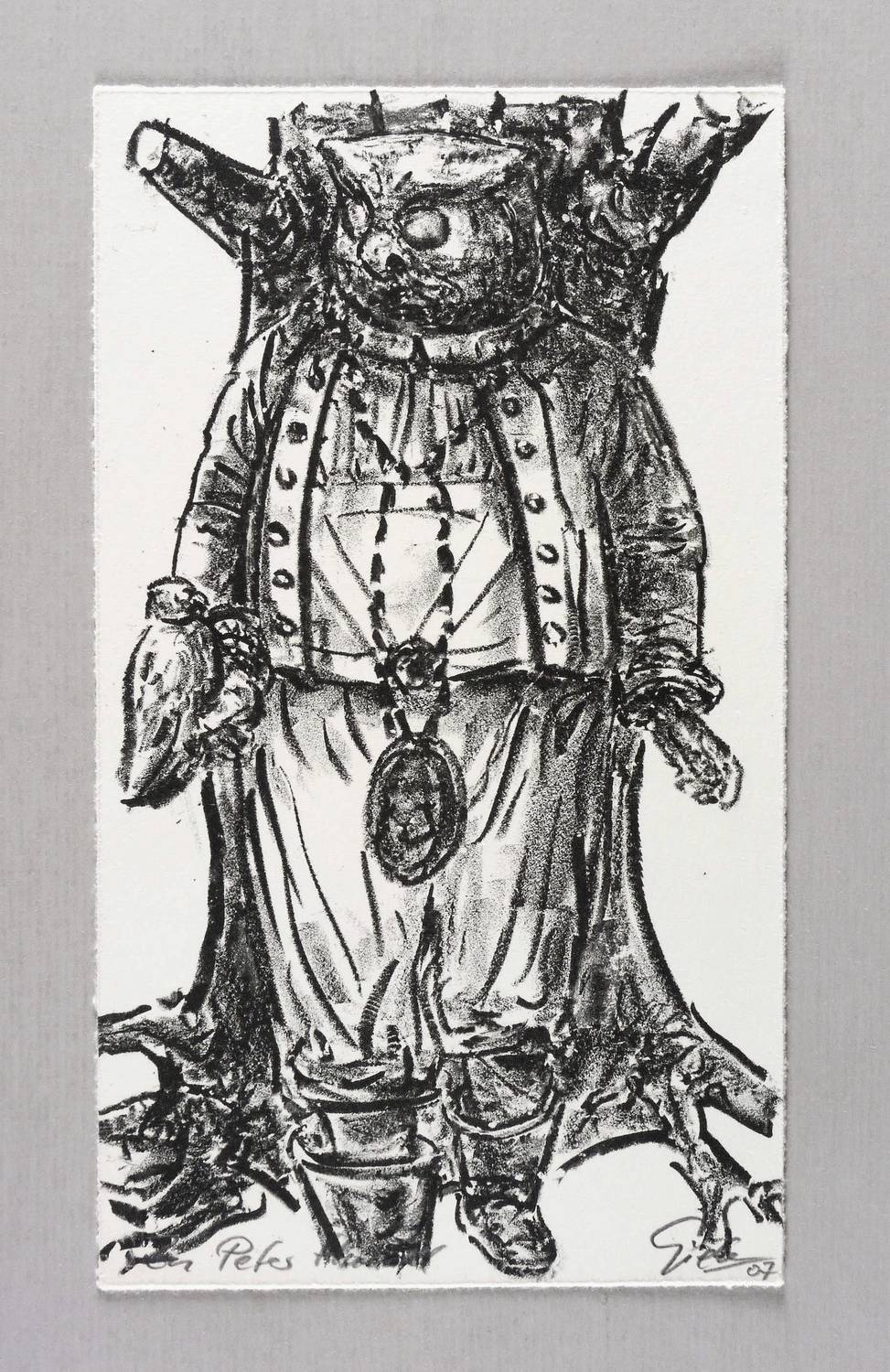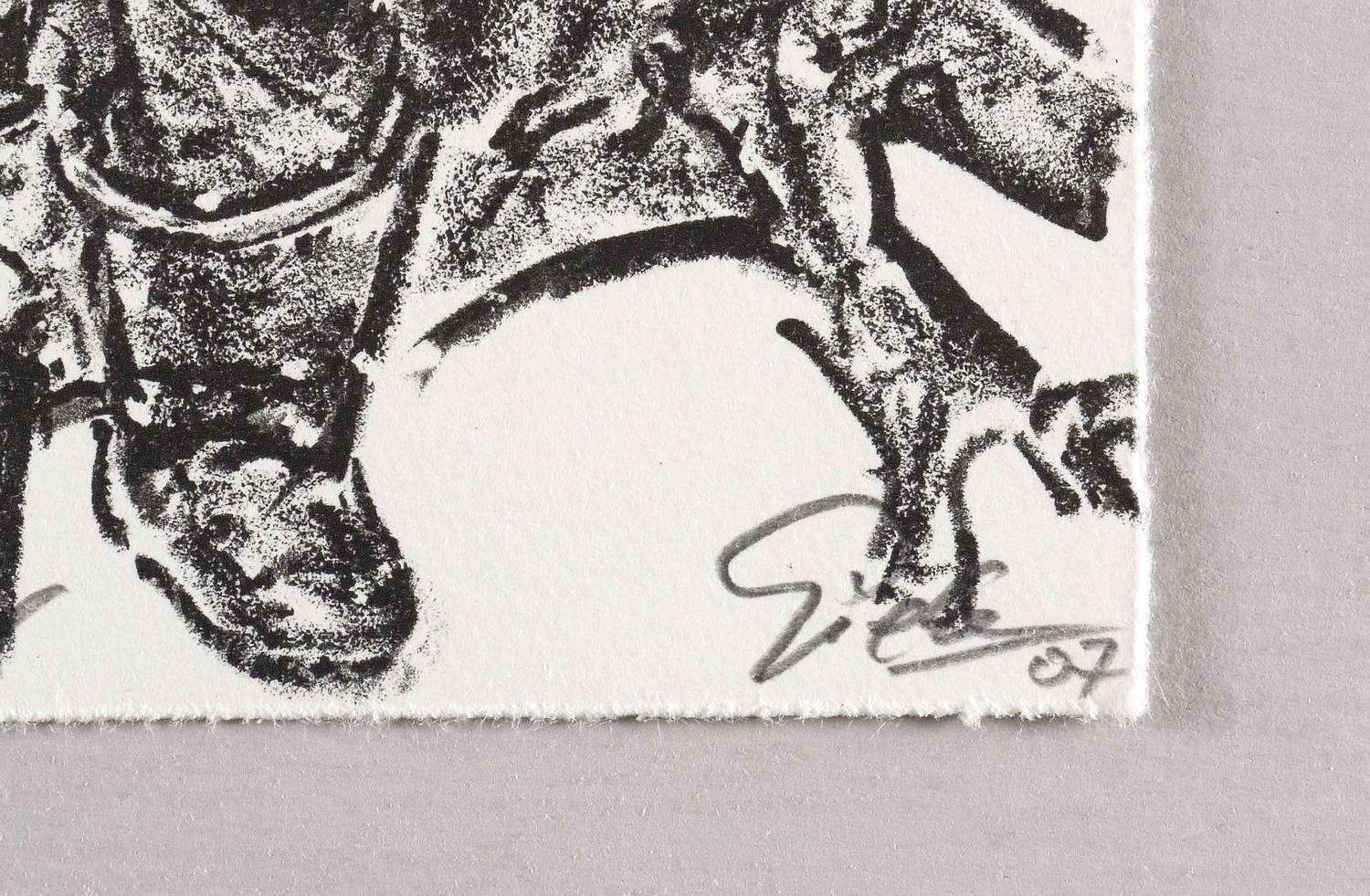2007. Lithografie / Kreidelithografie, in Schwarz, auf hellchamois Velin. – Originale Künstlergrafik, von Hubertus Giebe. – 22,5 x 13,0 cm (Darstellung / Blatt).
