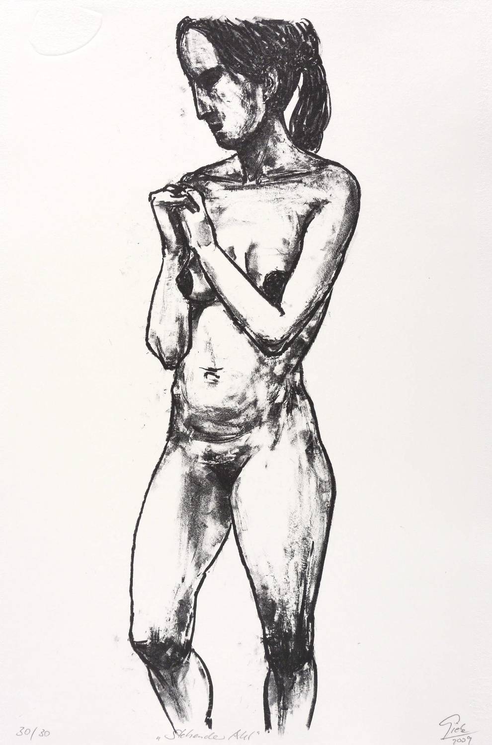 Rechts unten in Bleistift signiert und datiert: ″Giebe 2009″. Links Auflagenbezeichnung: ″30/30″. Mittig Titel: ″Stehender Akt″. Wasserzeichen. – Tadelloses Exemplar. Sehr guter Zustand.