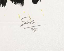 1994. Farblithografie / Kreidelithografie, in Gelb & Schwarz, auf schwerem hellchamois Hahnemühle. – Originale Künstlergrafik, von Hubertus Giebe. – Auflage Exemplar Nr. 5/10. – 60,7 x 44,8 cm (Darstellung / Druckbild), 80 x 54 cm (Blatt).