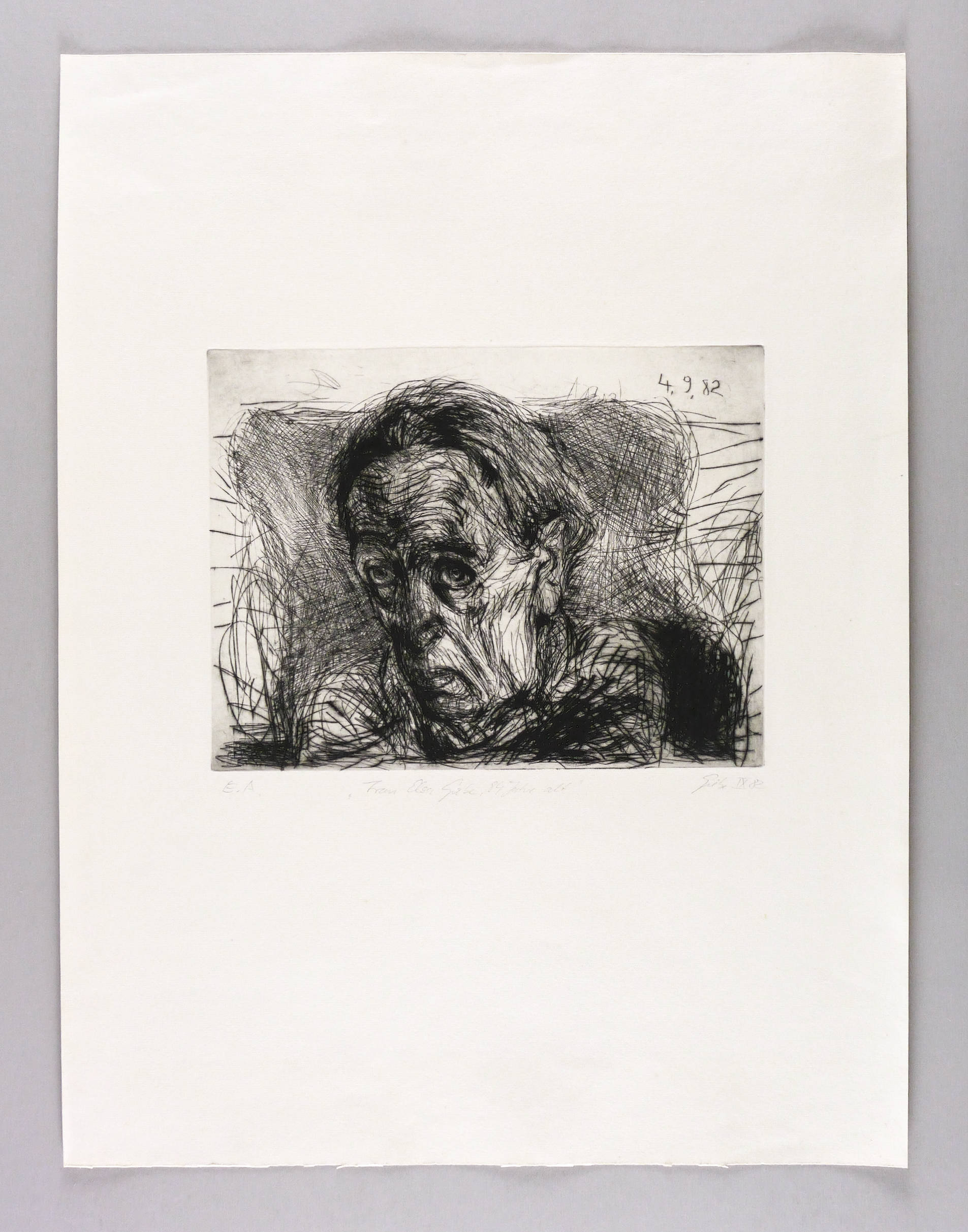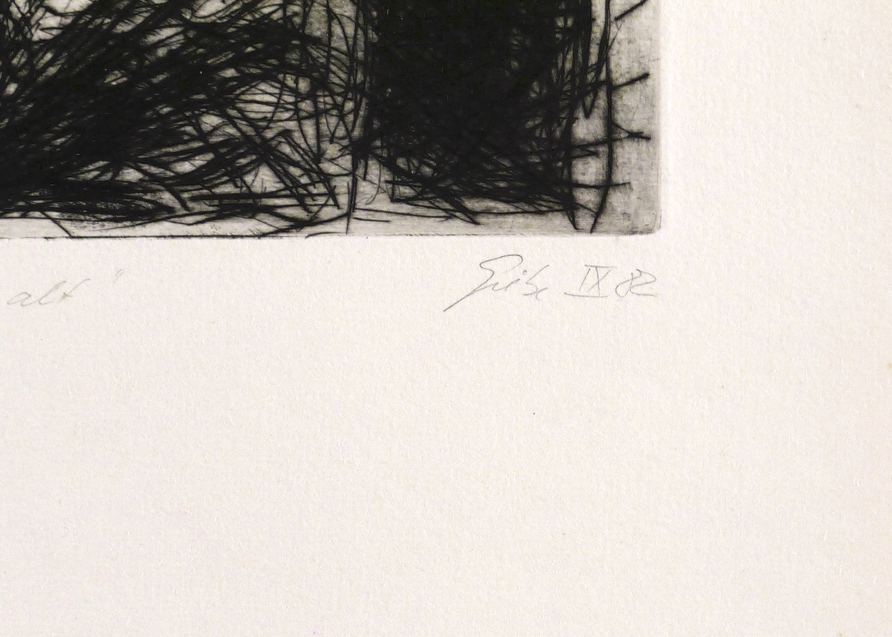 Rechts unten in Bleistift signiert und datiert: ″Giebe IX 82″. Links Auflagenbezeichnung. Mittig Titel. In der Platte rechts oben bezeichnet: ″4.9.82″. – Sehr guter Zustand.