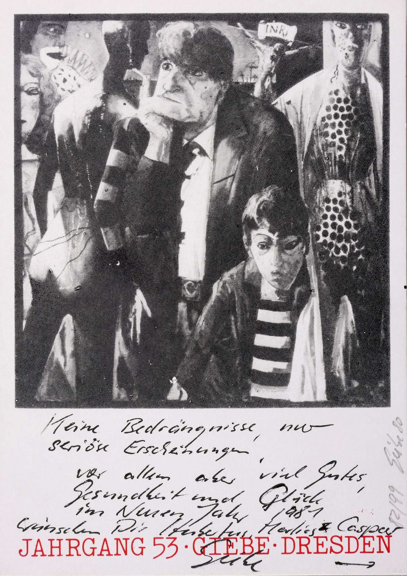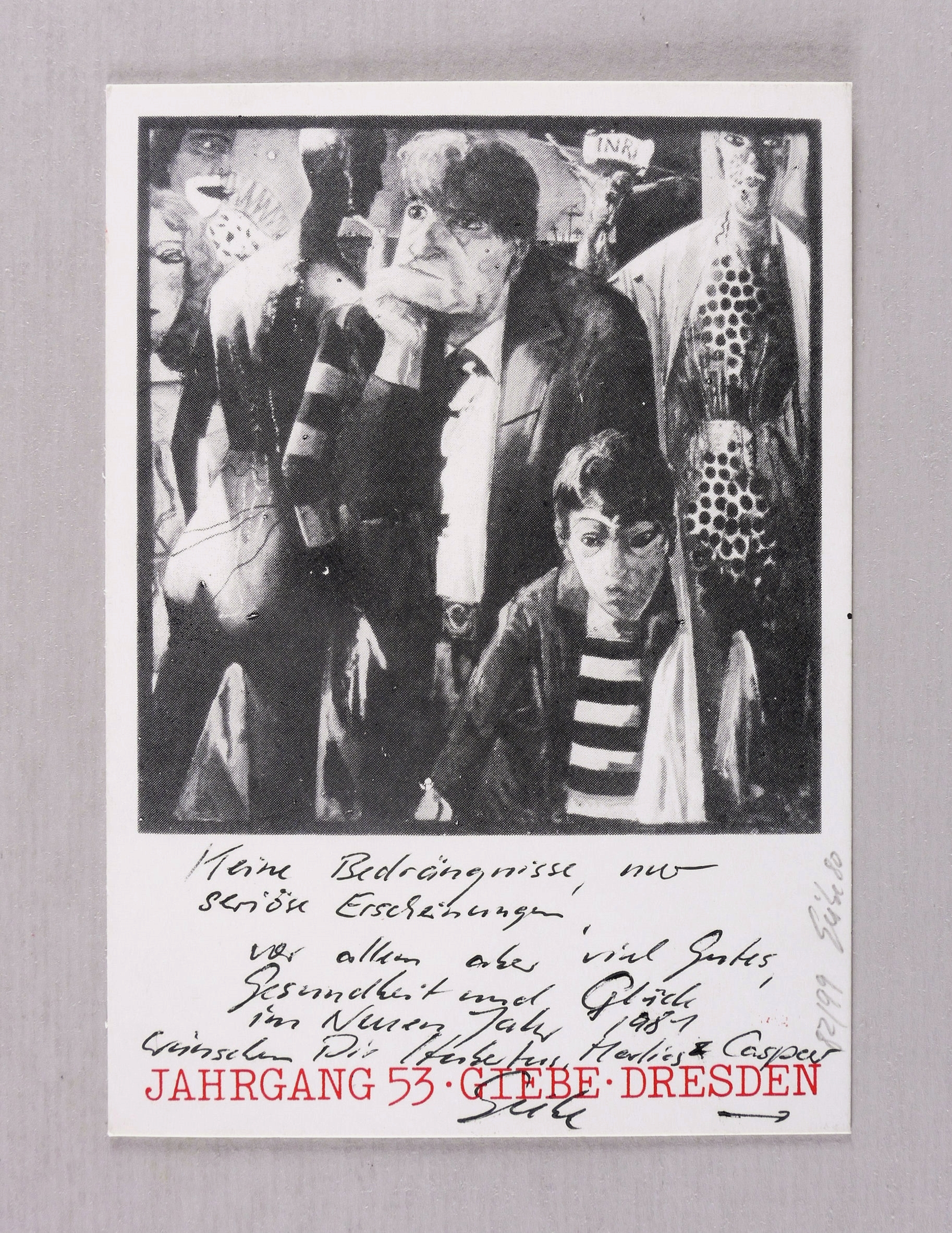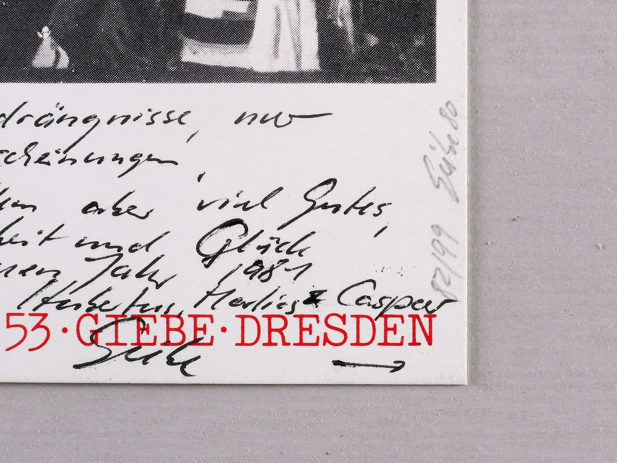 Rechts unten in Bleistift signiert und datiert: ″Giebe 80″. Dazu Auflagenbezeichnung: ″82/99″. Verso Kartengruß des Künstlers. – Provenienz: Sammlung Gert Söder, Dresden. – Originalrandig. Sehr guter Zustand.