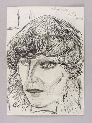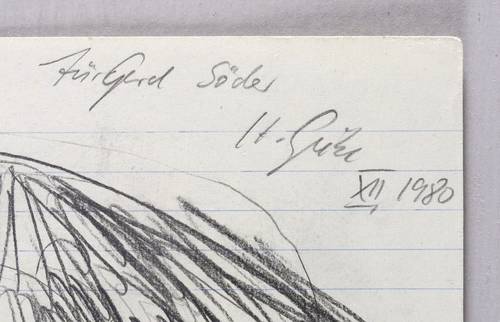1980. Zeichnung / Bleistiftzeichnung, auf leichtem liniertem Papier. – Originale Künstlergrafik, von Hubertus Giebe. – Unikat. – 28,7 x 20,4 cm (Darstellung / Blatt).