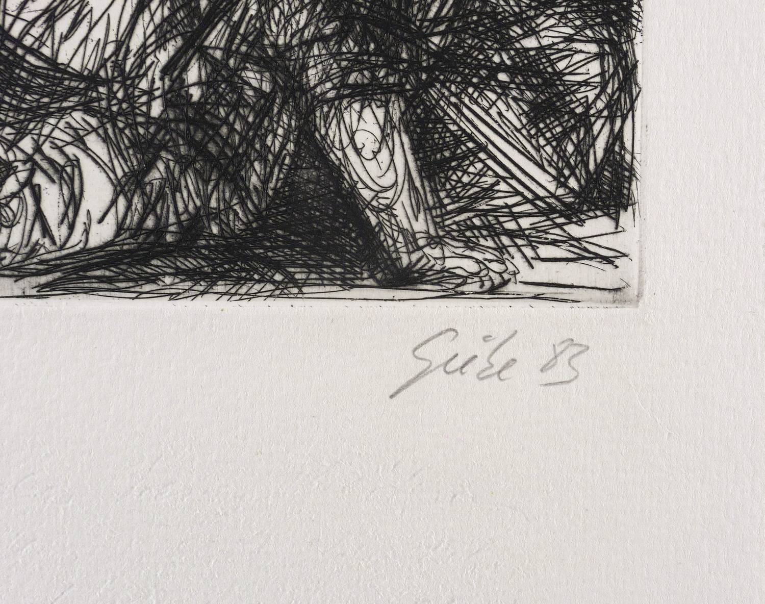 1982/1983. Radierung / Strichätzung, in Schwarz, auf hartem gelblichem Weißenborn. – Originale Künstlergrafik, von Hubertus Giebe. – Künstlerexemplar (e.a.). – 19,6 x 15,7 cm (Darstellung / Platte), 30 x 20 cm (Blatt).