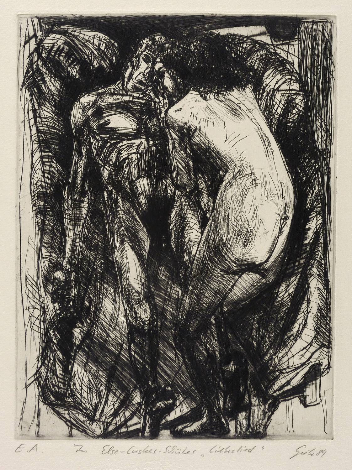Rechts unten in Bleistift signiert und datiert: ″Giebe 84″. Links Auflagenbezeichnung und Titel: ″E.A. // zu Else Lasker-Schüler 'Liebeslied'″. – Provenienz: Sammlung Erhard Frommhold, Dresden. – Tadellos. Sehr guter Zustand.