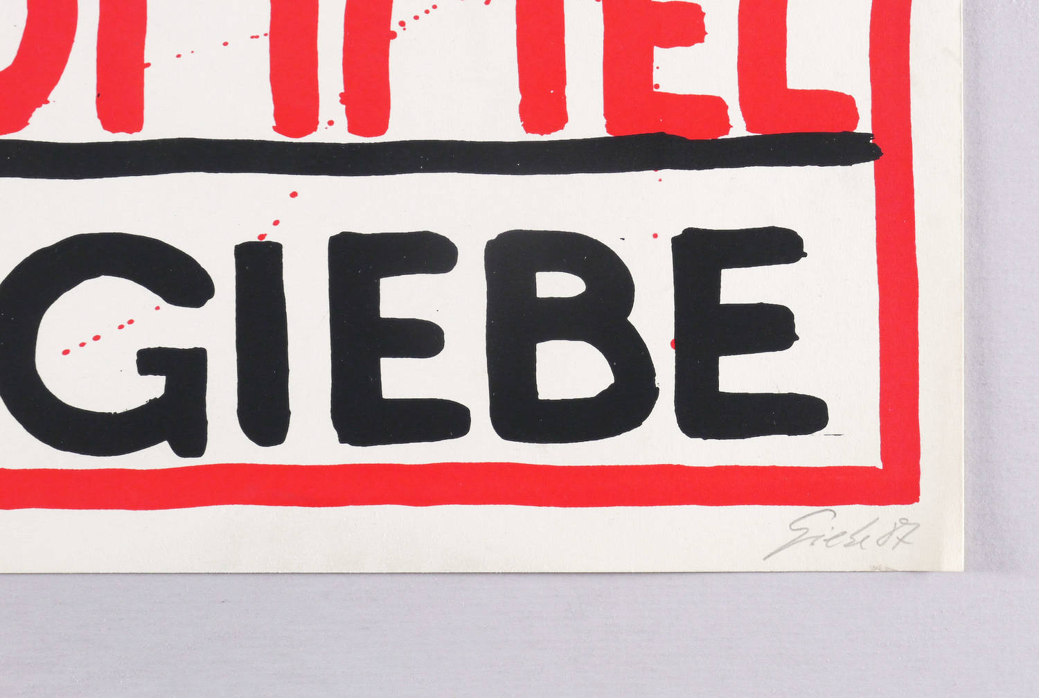 1987. Farblithografie / Pinsellithografie, in Rot & Schwarz, auf festem hellchamois Velinkarton. – Originales Künstlerplakat, von Hubertus Giebe. – 78,8 x 61,0 cm (Blatt).
