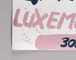 Links unten in Bleistift signiert und datiert: ″Giebe 88″. Im Stein diverse Plakat-Inschriften. – Originalgrafisches Plakat zur Ausstellung ″Johannes Heisig & Hubertus Giebe. Malerei, Grafik, Zeichnungen″ 30.04.-16.06.1988 in der Galerie Sunnen in Luxemburg. – Sehr guter Zustand.
