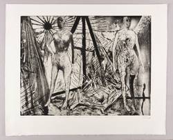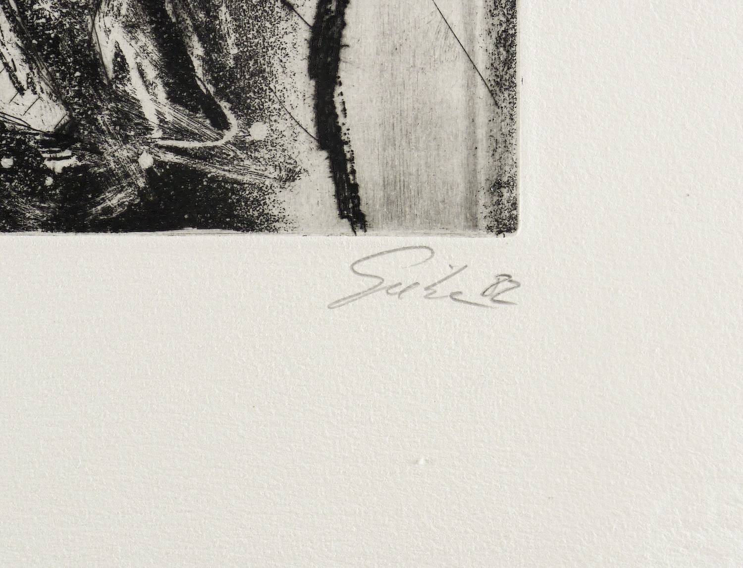 1982. Radierung / Aquatinta, Reservage & Kaltnadel, teils poliert, in Schwarz, auf hellchamois Hahnemühle. – Originale Künstlergrafik, von Hubertus Giebe. – Künstlerexemplar (e.a.). – 49,4 x 64,0 cm (Darstellung / Platte), 65 x 79 cm (Blatt).
