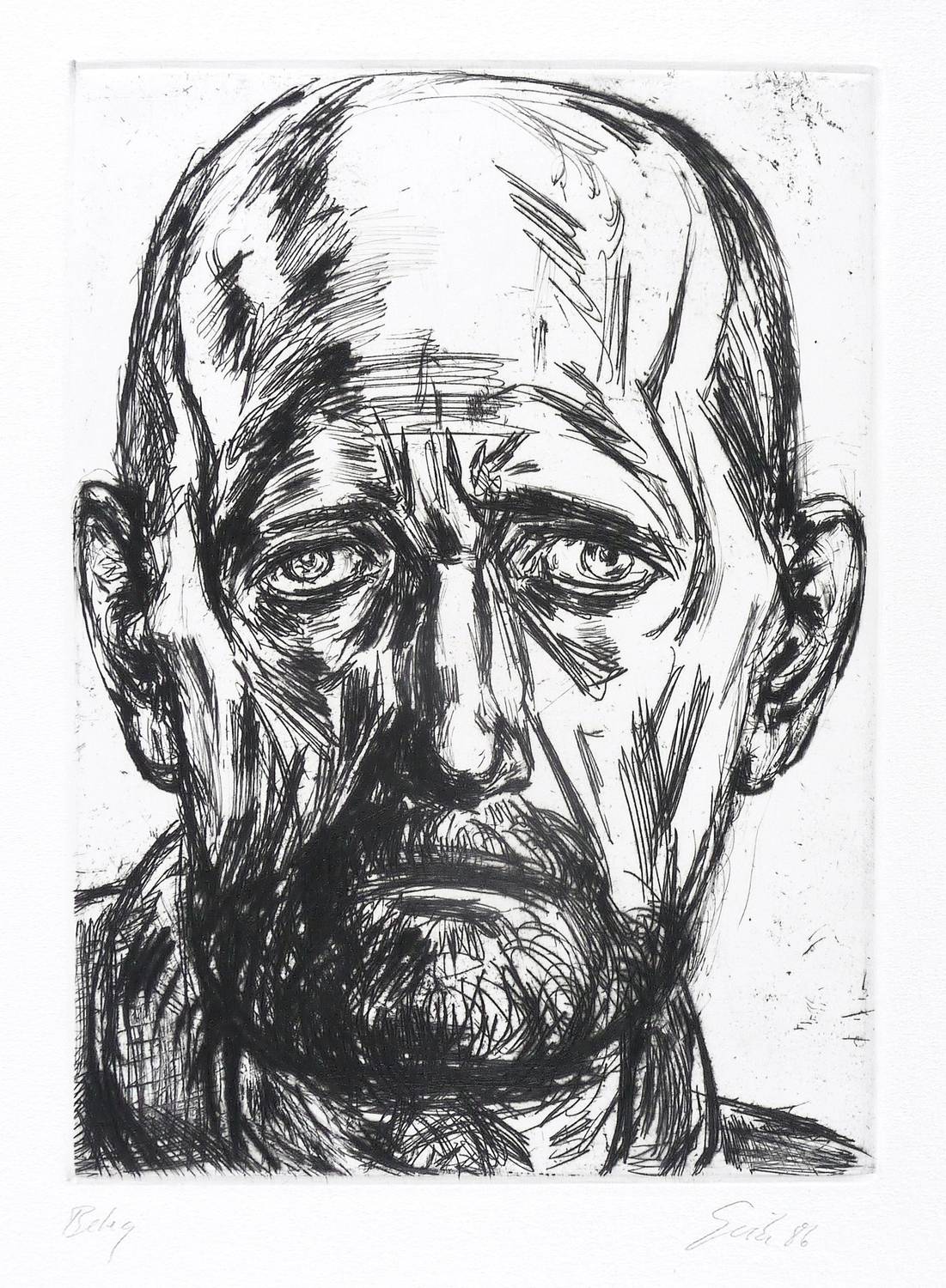 1986. Radierung / Strichätzung & Kaltnadel, in Schwarz, auf schwerem hellchamois Hahnemühle. – Originale Künstlergrafik, von Hubertus Giebe. – Druckerexemplar. – 25,2 x 18,1 cm (Darstellung / Platte), 48 x 36 cm (Blatt).