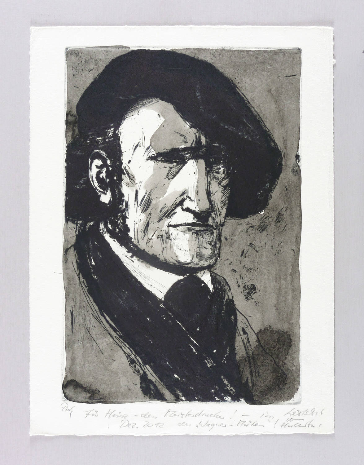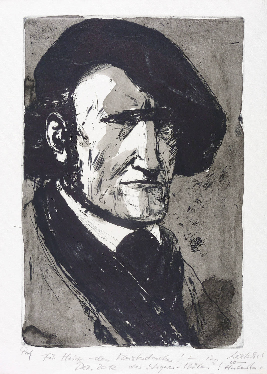 Links Auflagenbezeichnung: ″Probe″. Mittig bezeichnet: ″für Heinz - den Meisterdrucker! - im Dez. 2012 der 'Wagner-Mühen'! herzlichst von Hubertus″. – Provenienz: Sammlung Heinz Sparwart, Dresden. – Blattecken etwas bestoßen. Sonst guter Zustand.