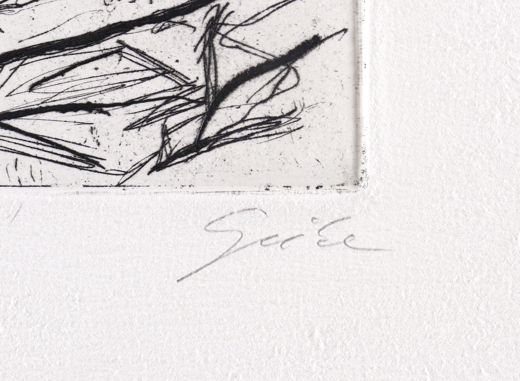 1980-1990. Radierung / Strichätzung, in Schwarz, auf hellchamois Hahnemühle. – Originale Künstlergrafik, von Hubertus Giebe. – Künstlerexemplar (e.a.). – 12,4 x 15,9 cm (Darstellung / Platte), 19 x 25 cm (Blatt).