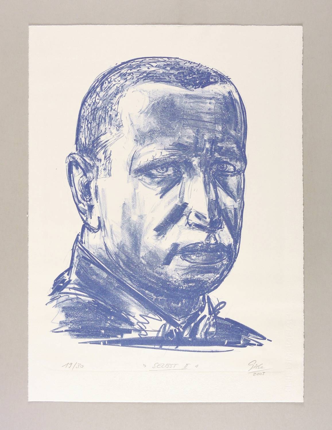 Unter dem Stein rechts in Bleistift signiert und datiert: ″Giebe 2003″. Links Auflagenbezeichnung: ″19/30″. Mittig Titel: ″SELBST II″. – Tadelloses Exemplar. Sehr guter Zustand.