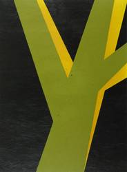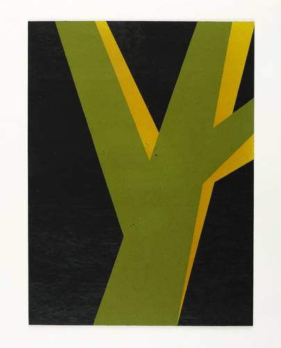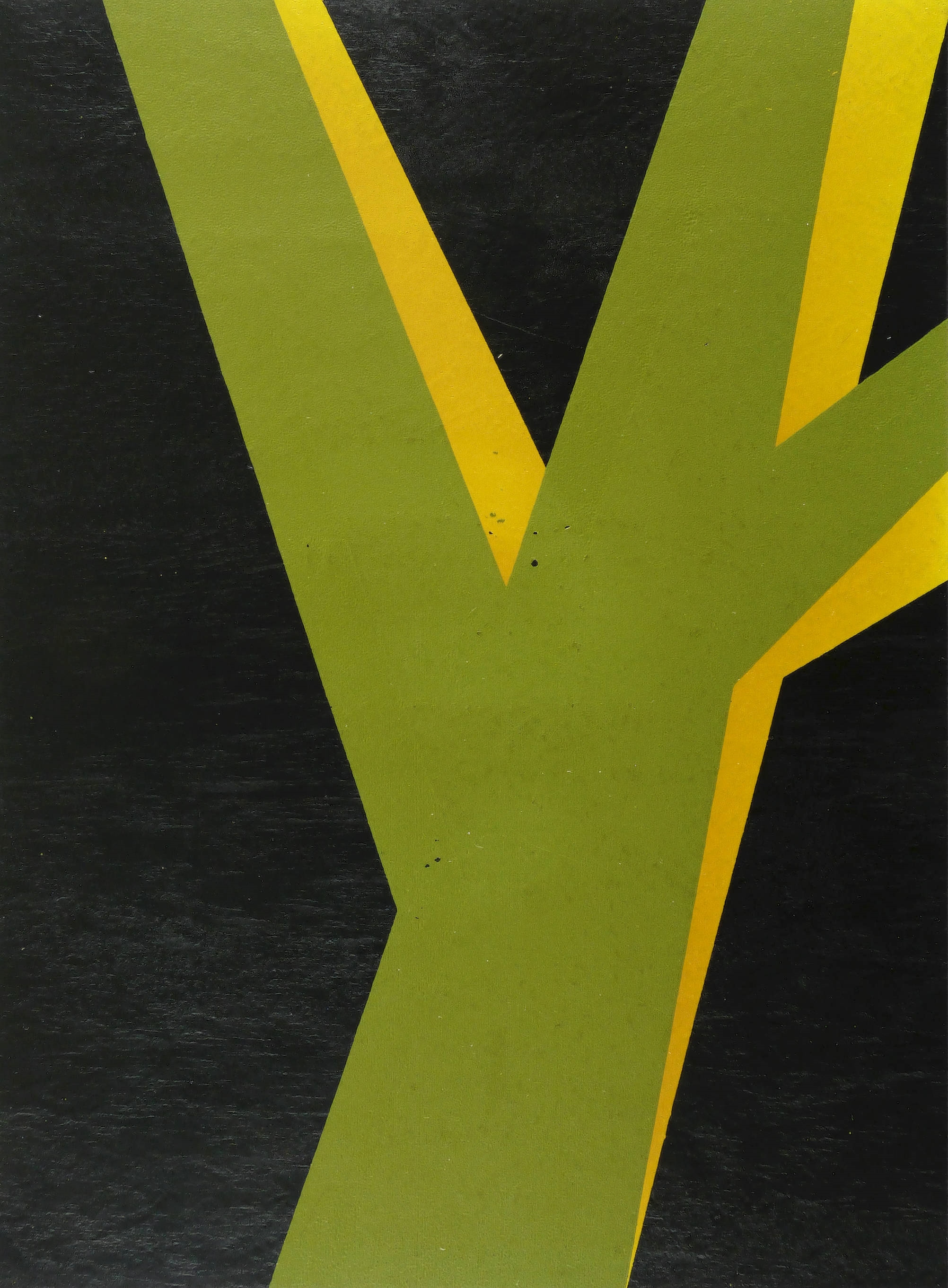 1969. Farbschablonendruck / Pochoir, in Grün & Gelb, auf schwarzer Tafel. – Originale Künstlergrafik, von Hermann Glöckner. – 26,1 x 19,3 cm (Darstellung / Tafel).