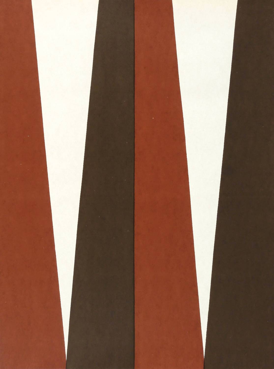 Aus: Hermann Glöckner, Werke aus den Jahren 1945 bis 1975 (Dresden: Büro für Kunstausstellungen des Bezirks Dresden 1976). – Nicht handsigniert. Verso in Bleistift bezeichnet: ″Hermann Glöckner - Vertikale Formen - '76″. – Siebdruck der Polydruck Dresden. - Originalgrafisches Blatt für den Katalog zur Ausstellung im Pretiosensaal des Dresdner Schlosses und im Glockenspielpavillon des Zwingers. - Die Gestaltung dieses Siebdrucks geht auf eine Komposition aus dem Jahr 1971 zurück. – Tadellos. Sehr guter Zustand.