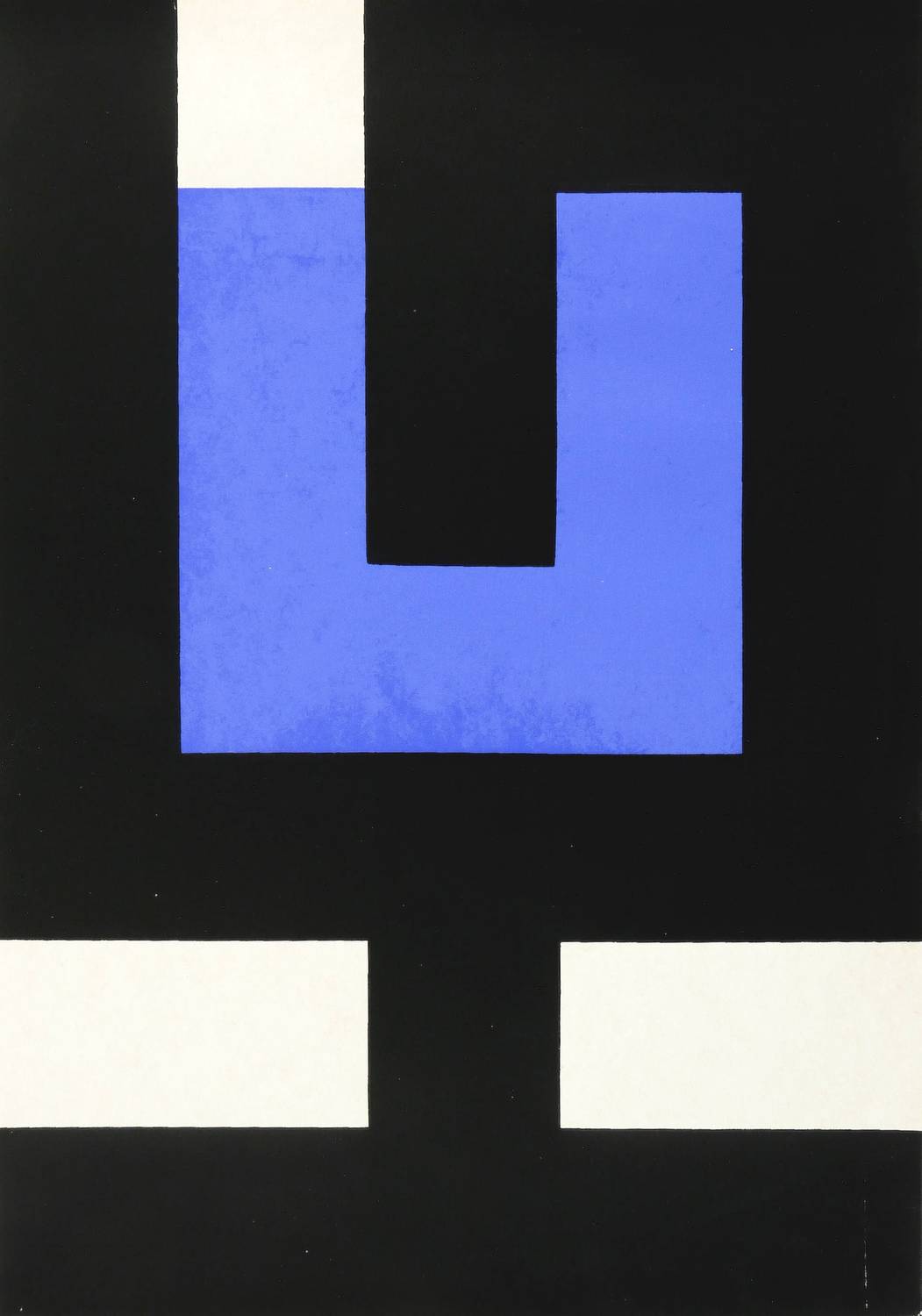 1972/1976. Farbsiebdruck / Farbserigrafie, in Blau & Schwarz, auf glattem hellchamois Karton. – Originale Künstlergrafik, von Hermann Glöckner. – 26,0 x 18,3 cm (Darstellung / Blatt).