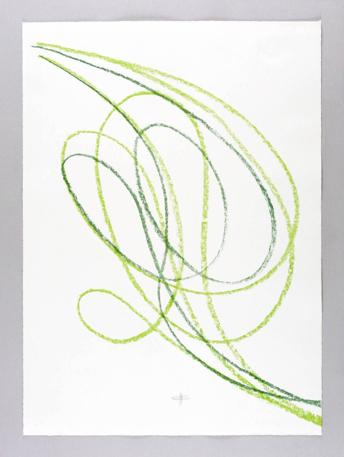 Unterhalb in Bleistift signiert mit Monogramm: ″HG″. Verso bezeichnet mit Skalen-Nr.: ″1.+2.″ Wasserzeichen der Hahnemühle. – Einzige Lithografie des Künstlers. Basierend auf einer mehrfarbigen Handzeichnung aus der Werkgruppe der ″Schwünge″. 1984 unter Aufsicht des Künstlers in der städtischen Druckwerkstatt in Dresden-Friedrichstadt von Michael Wackwitz aufwändig von 4 Steinen gedruckt. – Im Vorfeld des Auflagendrucks von 50 Exemplaren entstand ein einmaliger Satz Skalendrucke mit 4 Farbauszügen von jedem einzelnen Stein sowie 3 aufeinander aufbauenden Zusammendrucken inklusive dem 4- farbigen Schlussblatt als Endergebnis. Jeder einzelne dieser 7 Skalendrucke wurde nur einmal gedruckt. – Tadellos erhalten. Hervorragender Zustand.