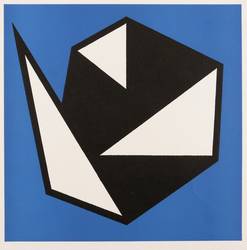 Aus: Graphische Etüden. Grafik-Edition XIII (Leipzig: Reclam 1982). – Nicht handsigniert. Verso in Bleistift bezeichnet: ″Hermann Glöckner / Faltung Blau-Weiß / 1982 / Hochdruck (!) für Mappe 'Graph. Etüden' / originalgrafische Umschlag-Gestaltung″. – Farbclichè nach dem Farbsiebdruck ″Schwarz-weiße Faltung vor blauem Grund″ (1982) für die Umschlaggestaltung des originalgrafischen Mappenwerks ″Graphische Etüden. Sachlich, konstruktiv, experimentell″ (Grafik-Edition XIII, Leipzig: Reclam- Verlag 1982). – Sehr guter Zustand.