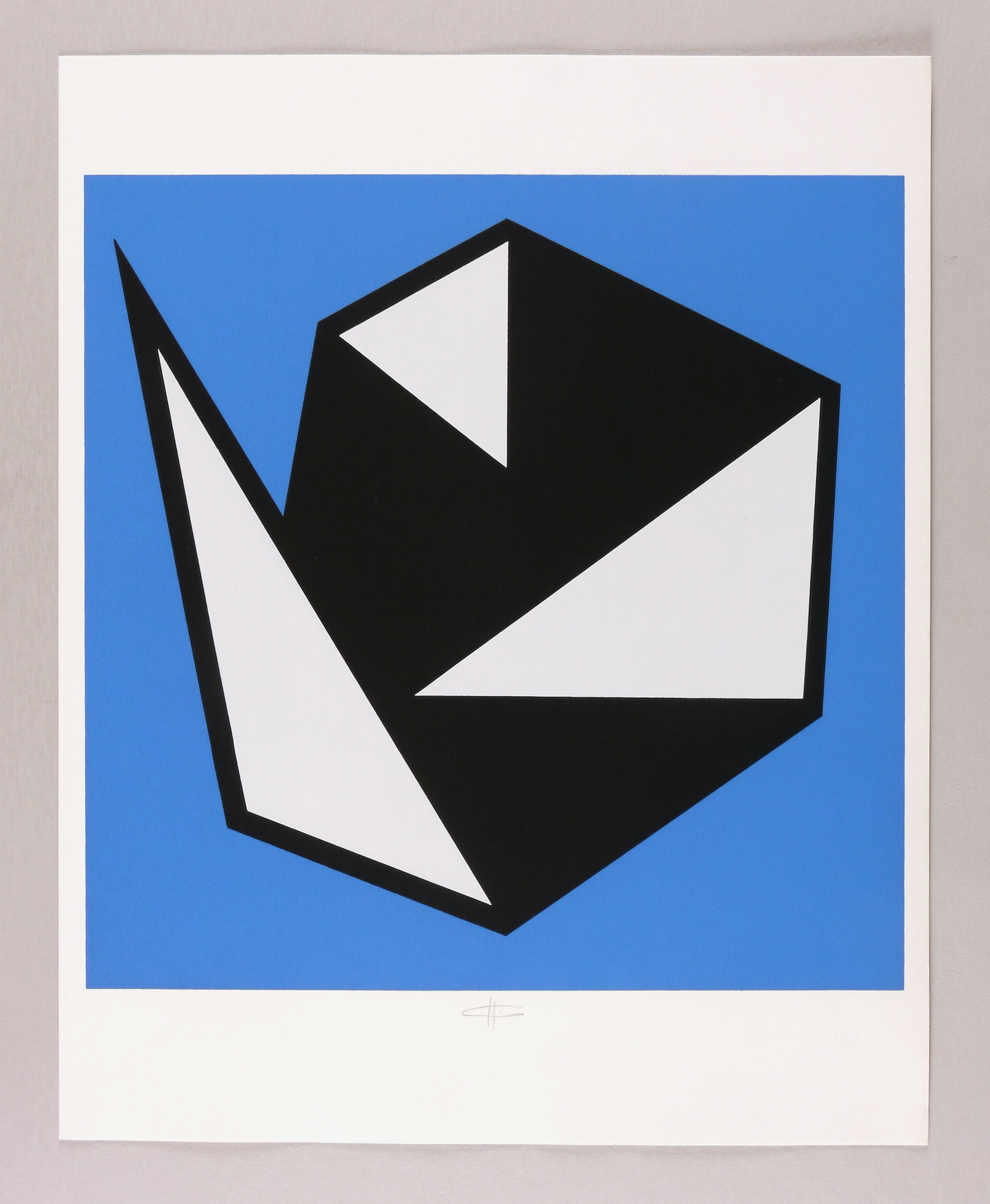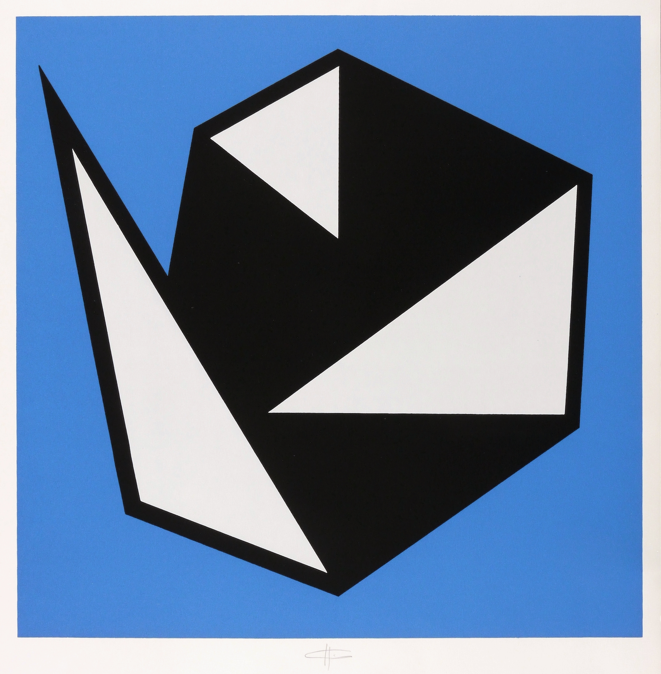 1982. Farbsiebdruck / Farbserigrafie, in Blau & Schwarz, auf glattem weißem Karton. – Originale Künstlergrafik, von Hermann Glöckner. – Auflage 125 Exemplare. – 37,5 x 37,7 cm (Darstellung / Druckbild), 51 x 41 cm (Blatt).