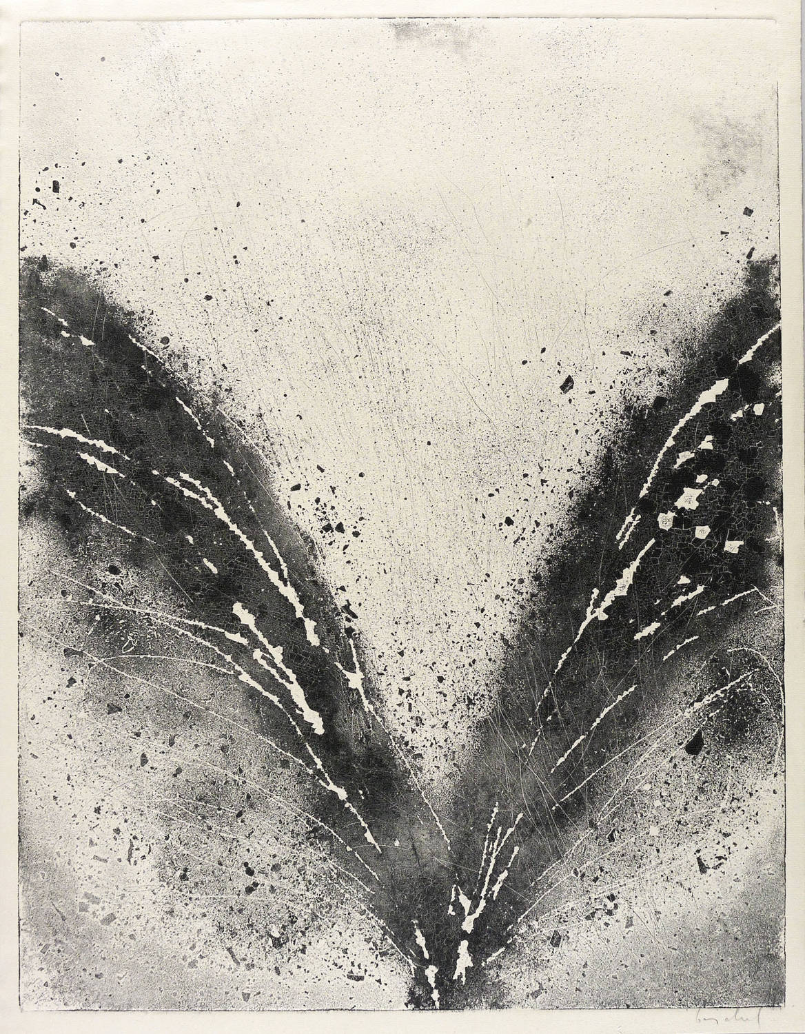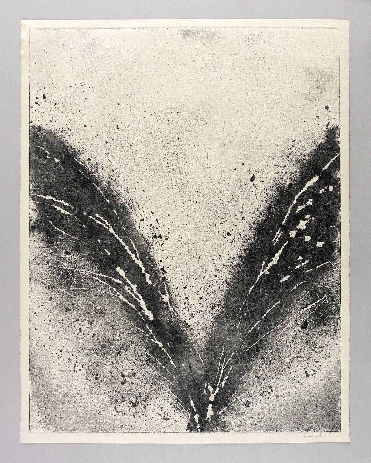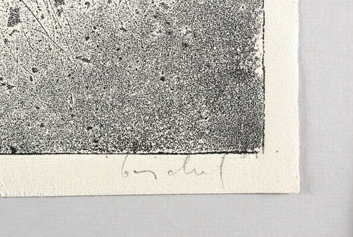 1987. Radierung / Aquatinta & Reservage, in Schwarz, auf rauem hellchamois Hahnemühle. – Originale Künstlergrafik, von Eberhard Göschel. – 64,6 x 49,9 cm (Darstellung / Platte), 68 x 53 cm (Blatt).