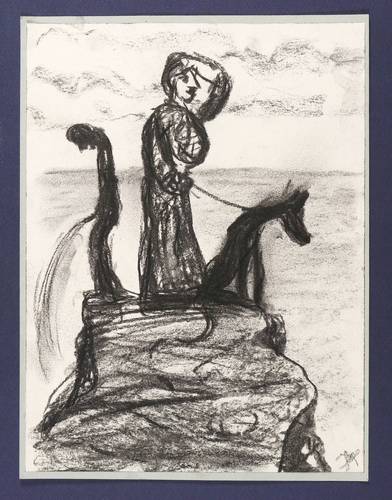 Um 2000. Zeichnung / Kohlezeichnung, partiell gewischt. – Originale Künstlergrafik, von Peter Graf. – Unikat. – 27,9 x 21,2 cm (Darstellung / Blatt), 29 x 22 cm (Trägerkarton).
