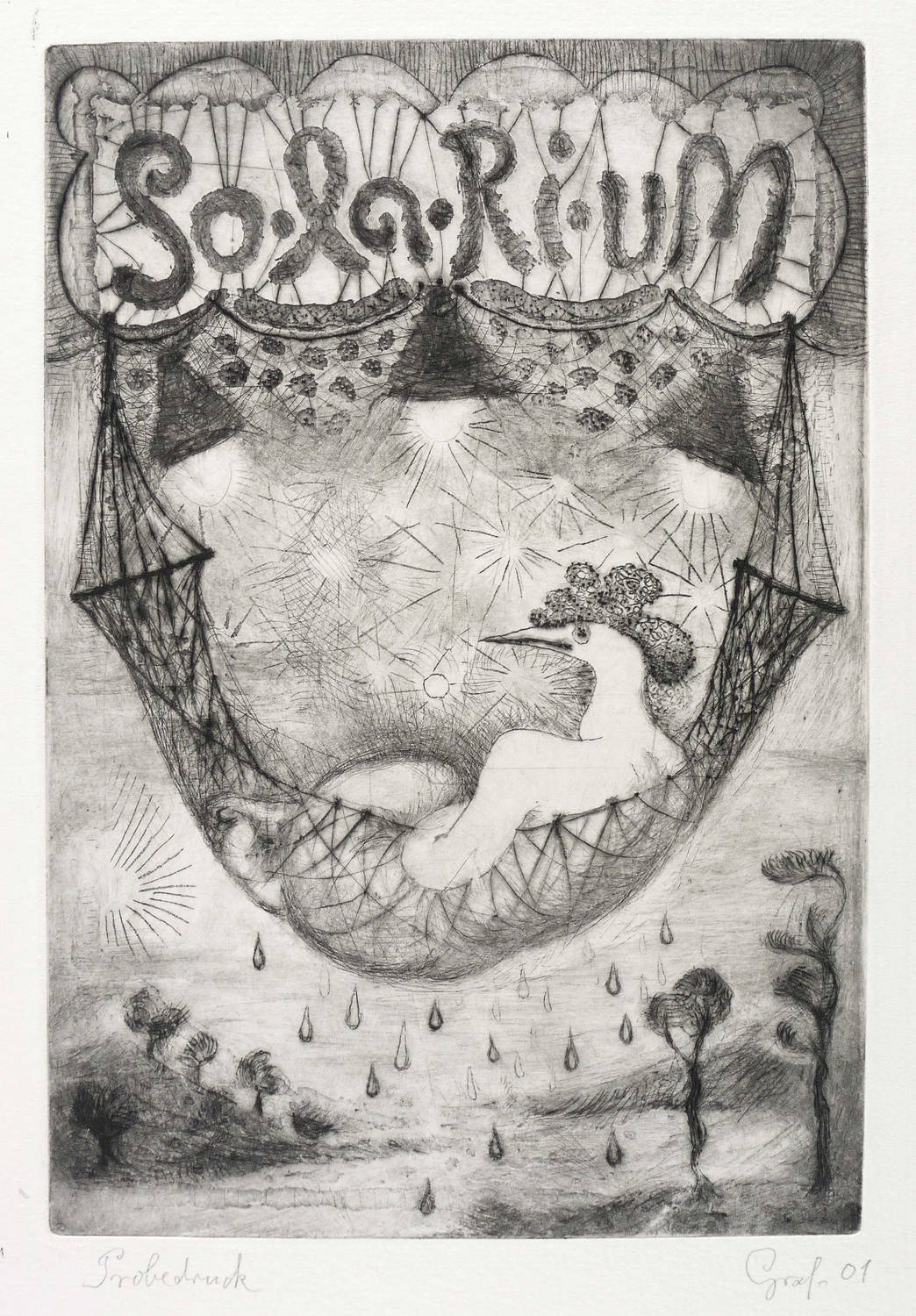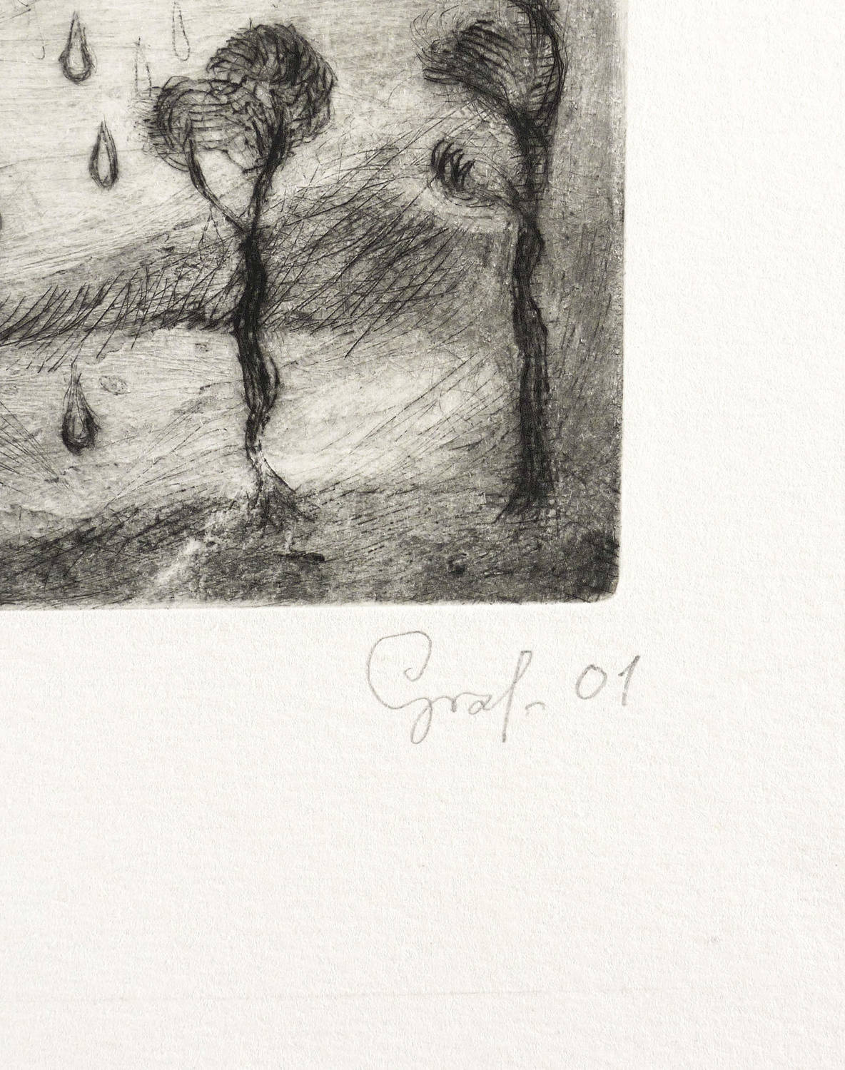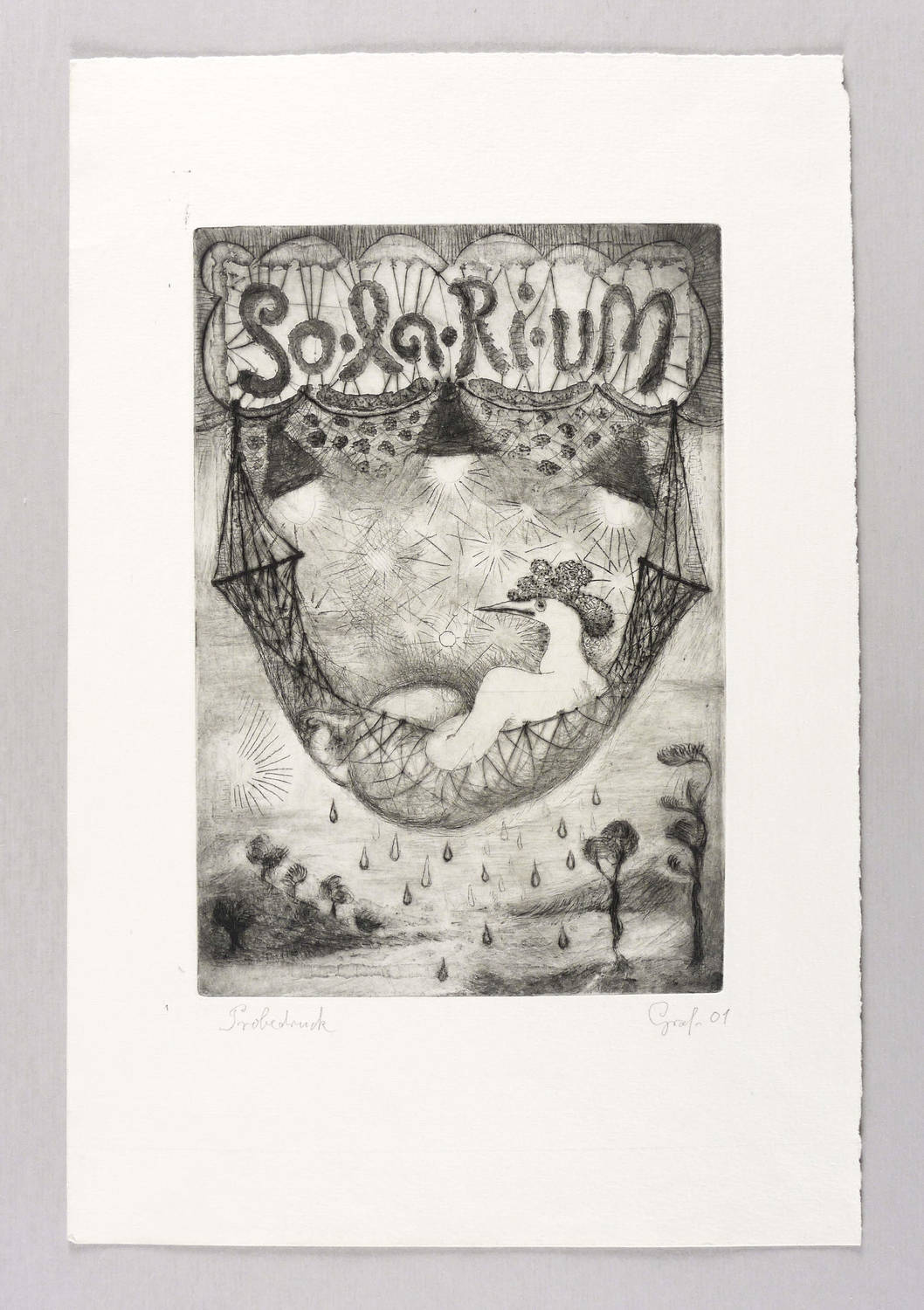 Rechts unten in Bleistift signiert und datiert: ″Graf 01″. Links Auflagenbezeichnung. In der Platte oben Inschrift bzw. Titel: ″So.la.Ri.uM″. – Unbeschnittenes Exemplar. Spuren von Druckfarbe am Plattenrand. Sehr guter Zustand.