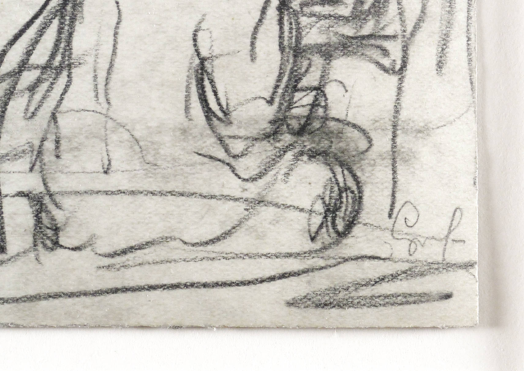 1960-1970. Zeichnung / Graphitzeichnung, partiell gewischt, auf hellgrauem Tonpapier. – Originale Künstlergrafik, von Peter Graf. – Unikat. – 13,8 x 18,7 cm (Darstellung / Blatt), 30 x 40 cm (Passepartout).