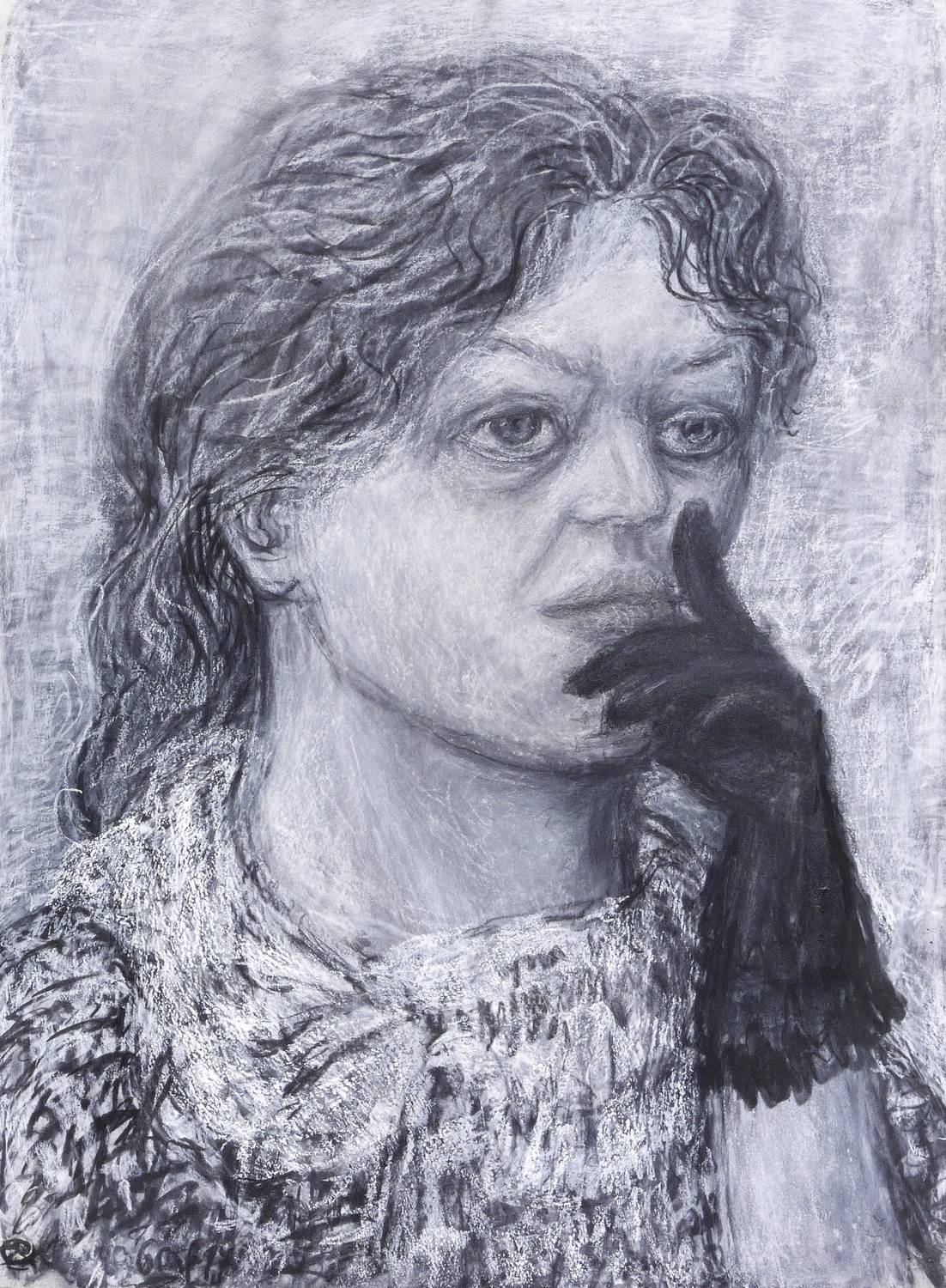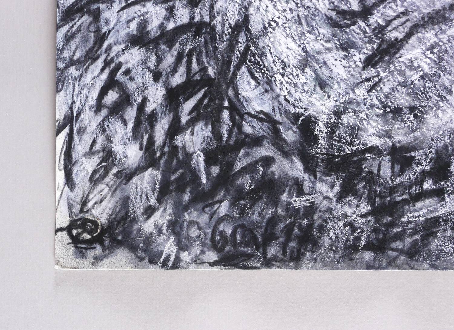2017. Zeichnung / Kohle- & Kreidezeichnung, partiell gewischt, auf Karton. – Originale Künstlergrafik, von Peter Graf. – Unikat. – 69,0 x 50,0 cm (Darstellung / Blatt).