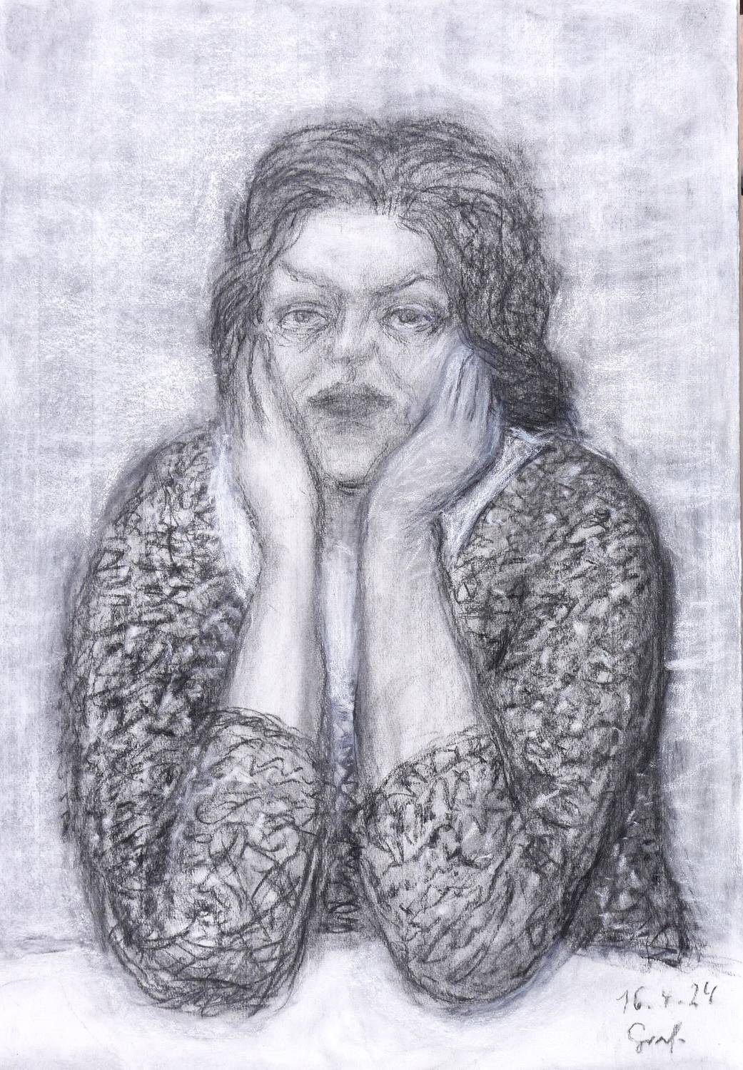 2024. Zeichnung / Kohle- & Kreidezeichnung, partiell gewischt, auf Karton. – Originale Künstlergrafik, von Peter Graf. – Unikat. – 74,2 x 51,8 cm (Darstellung / Blatt).