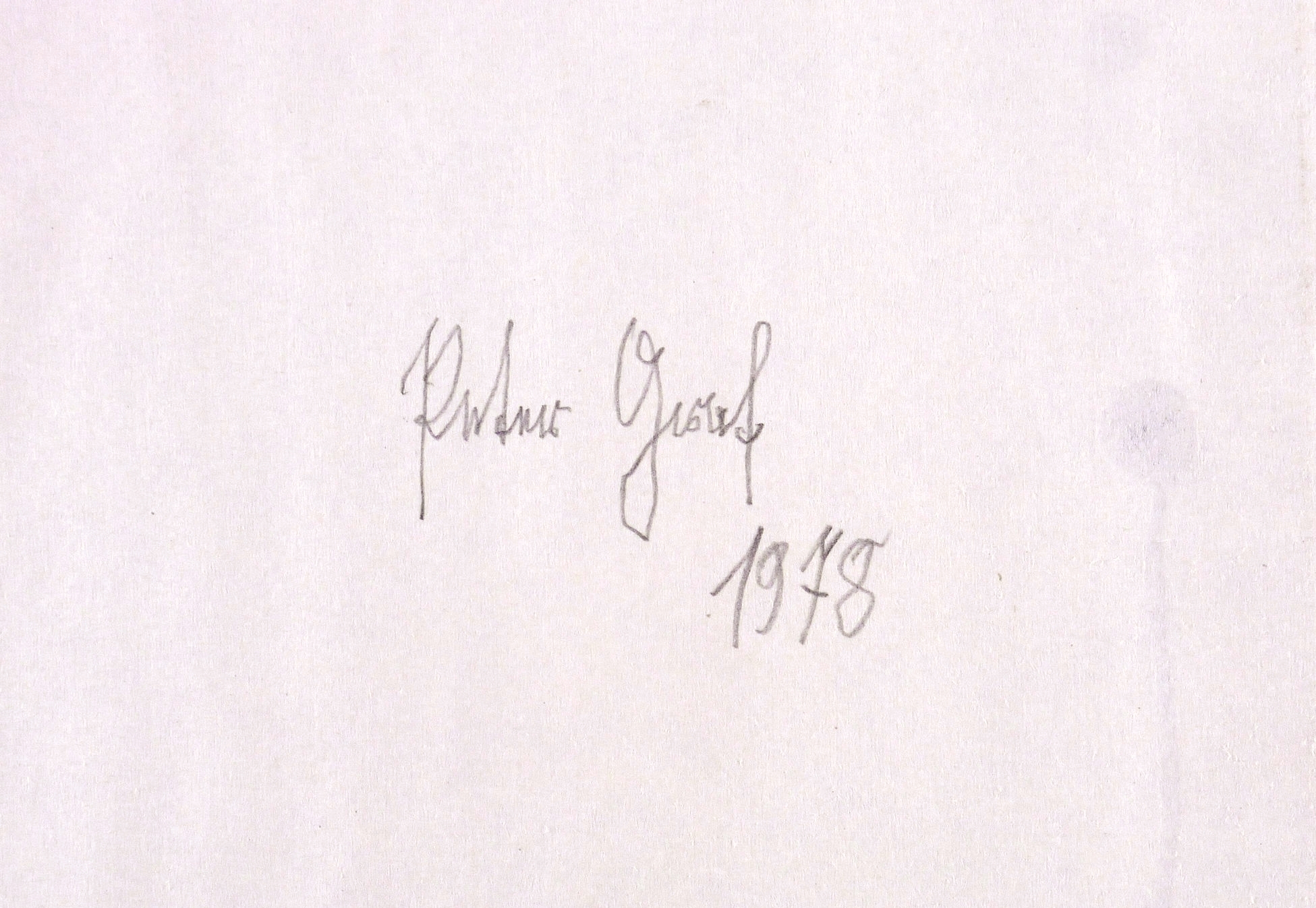 1978. Zeichnung / Graphitzeichnung, partiell gewischt, auf leichtem hellchamois Velin. – Originale Künstlergrafik, von Peter Graf. – Unikat. – 22,7 x 16,9 cm (Darstellung / Blatt), 27 x 21 cm (Trägerblatt).