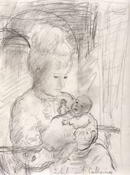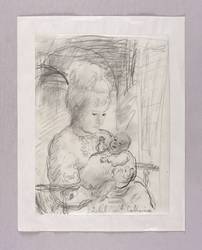 Verso auf dem Trägerblatt in Bleistift signiert und datiert: ″Peter Graf 1978″. In der Darstellung rechts unten in Bleistift bezeichnet: ″Bärbel mit Catharina″. – Provenienz: Sammlung Gert Söder, Dresden. Später Gerlint Söder & Erhard Frommhold, Dresden. – Vom Künstler original auf Trägerblatt gesetzt. Guter Zustand.