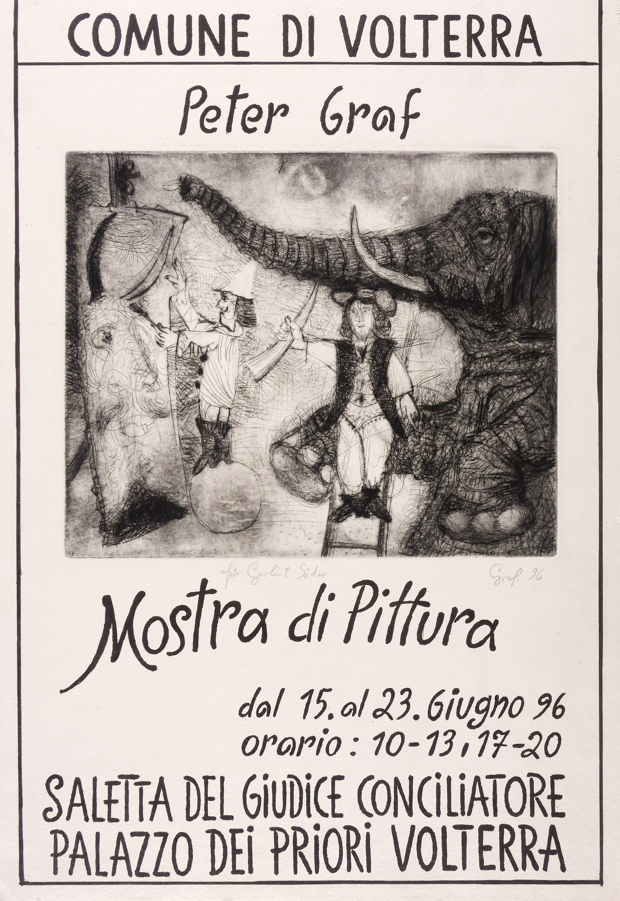 Graf, Peter. – Ausstellungsplakat Palazzo dei Priori Volterra. – „Das Porträtieren des Elefanten”.