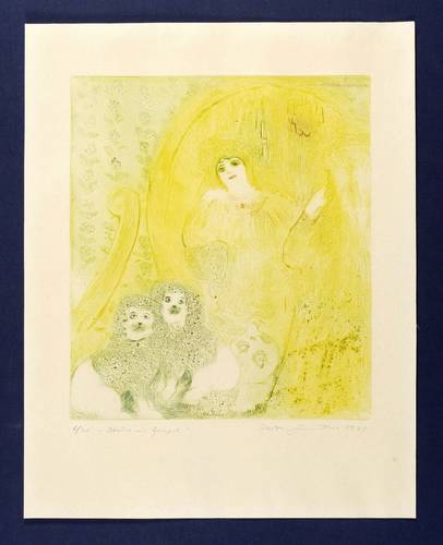 1971. Farbradierung / Reservage & Strichätzung, in Grün, Gelb & Rot, auf gelblichem Kupferdruckkarton. – Originale Künstlergrafik, von Herta Günther. – Auflage Exemplar Nr. 6/20. – 29,9 x 26,3 cm (Darstellung / Platte), 43 x 34 cm (Blatt).