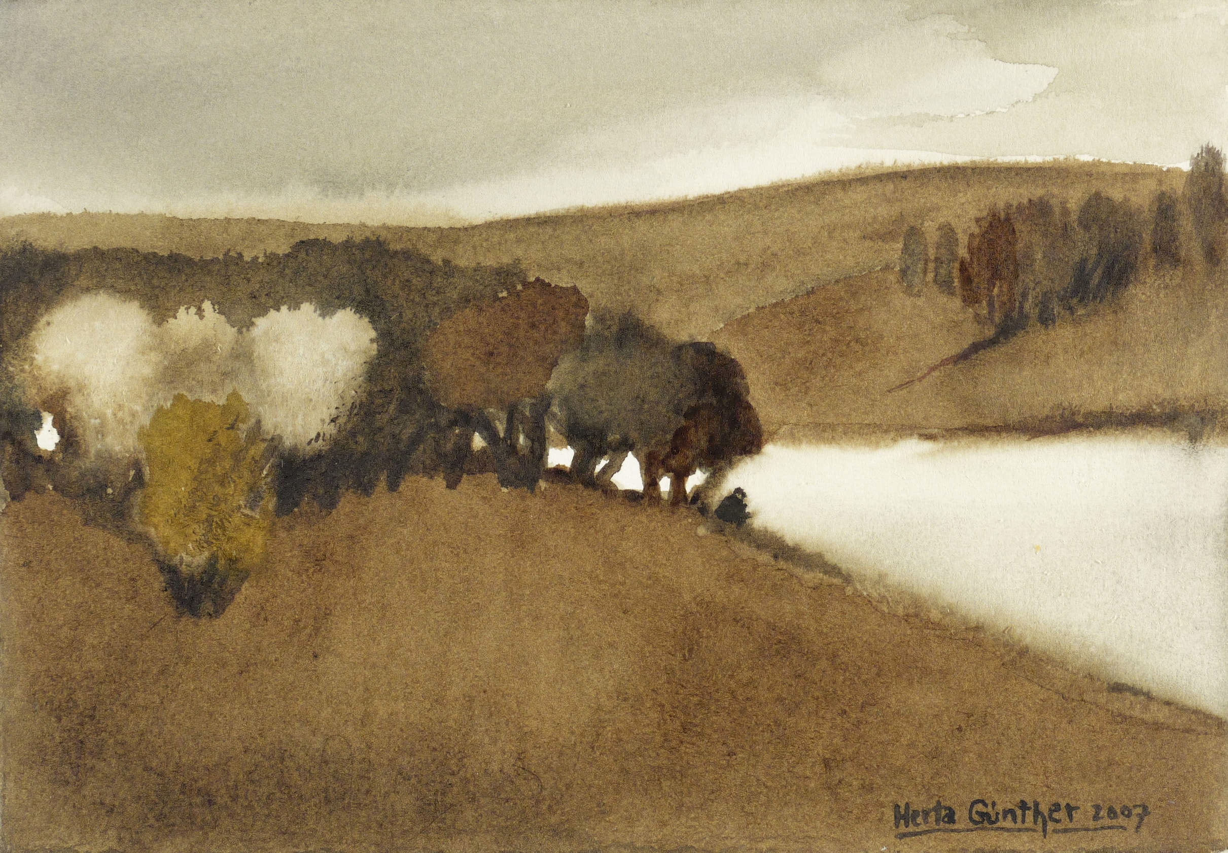 2009. Zeichnung / Aquarell, auf Aquarellkarton. – Originale Künstlergrafik, von Herta Günther. – Unikat. – 17,5 x 25,0 cm (Darstellung / Blatt), 30,0 x 35,5 cm (Passepartout).