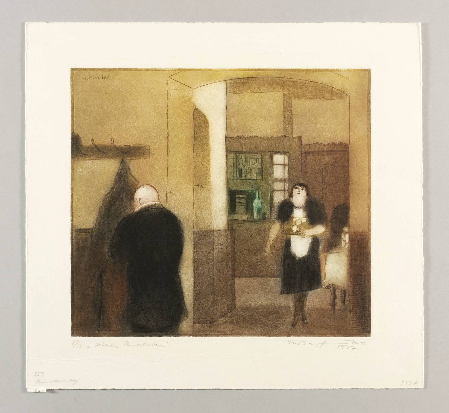 Herta Günther (1934 Dresden - 2018 Dresden). Deutsche Malerin und Grafikerin. 1951-56 Studium an der Hochschule für Bildende Künste bei Hans Theo Richter und Max Schwimmer. Seit 1956 im Verband bildender Künstler. Ab 1957 freischaffend. Zahlreiche Reisen ins Ausland. 1966 erste Einzelausstellung. 1970 eigenes Atelier im Haus des heutigen Societätstheaters Dresden. 1978 Eröffnung der Ausstellung im Glockenspielpavillon Dresden durch Dr. Fritz Löffler. 1983 Werkverzeichnis der Druckgrafik. 1989 umfangreiche Ausstellung mit Katalog im Museum Galerie Junge Kunst in Frankfurt/Oder. Herta Günther zählt zu den wichtigsten Dresdner Künstlerinnen des 20. Jahrhunderts.