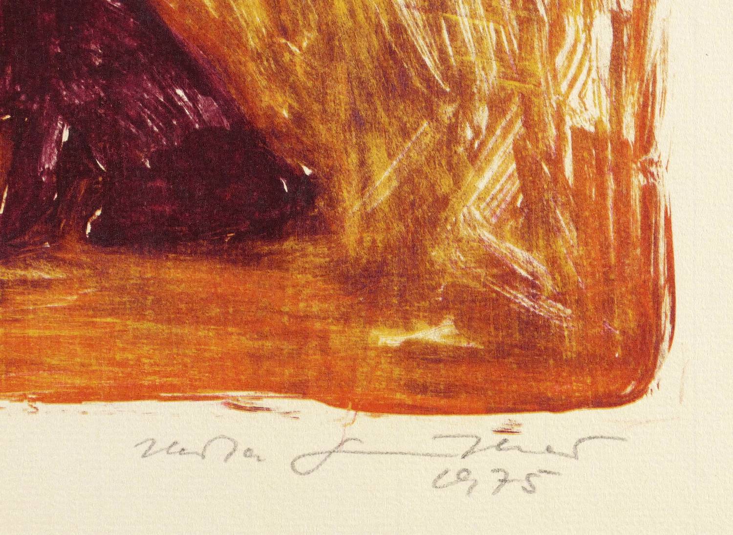 1975. Farbzinkografie / Kreide- & Pinselzinkografie, in 4 Farben, auf hellchamois Achat-Büttenpapier. – Originale Künstlergrafik, von Herta Günther. – Auflage Exemplar Nr. 6/50. – 40,2 x 30,1 cm (Darstellung / Druckbild), 54 x 42 cm (Blatt).