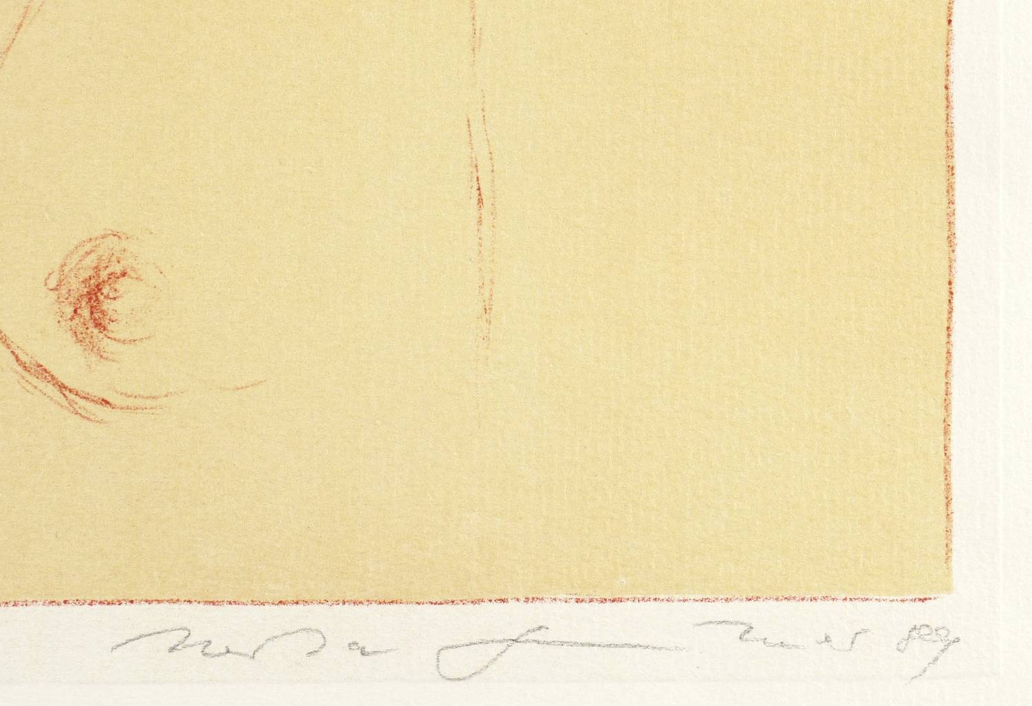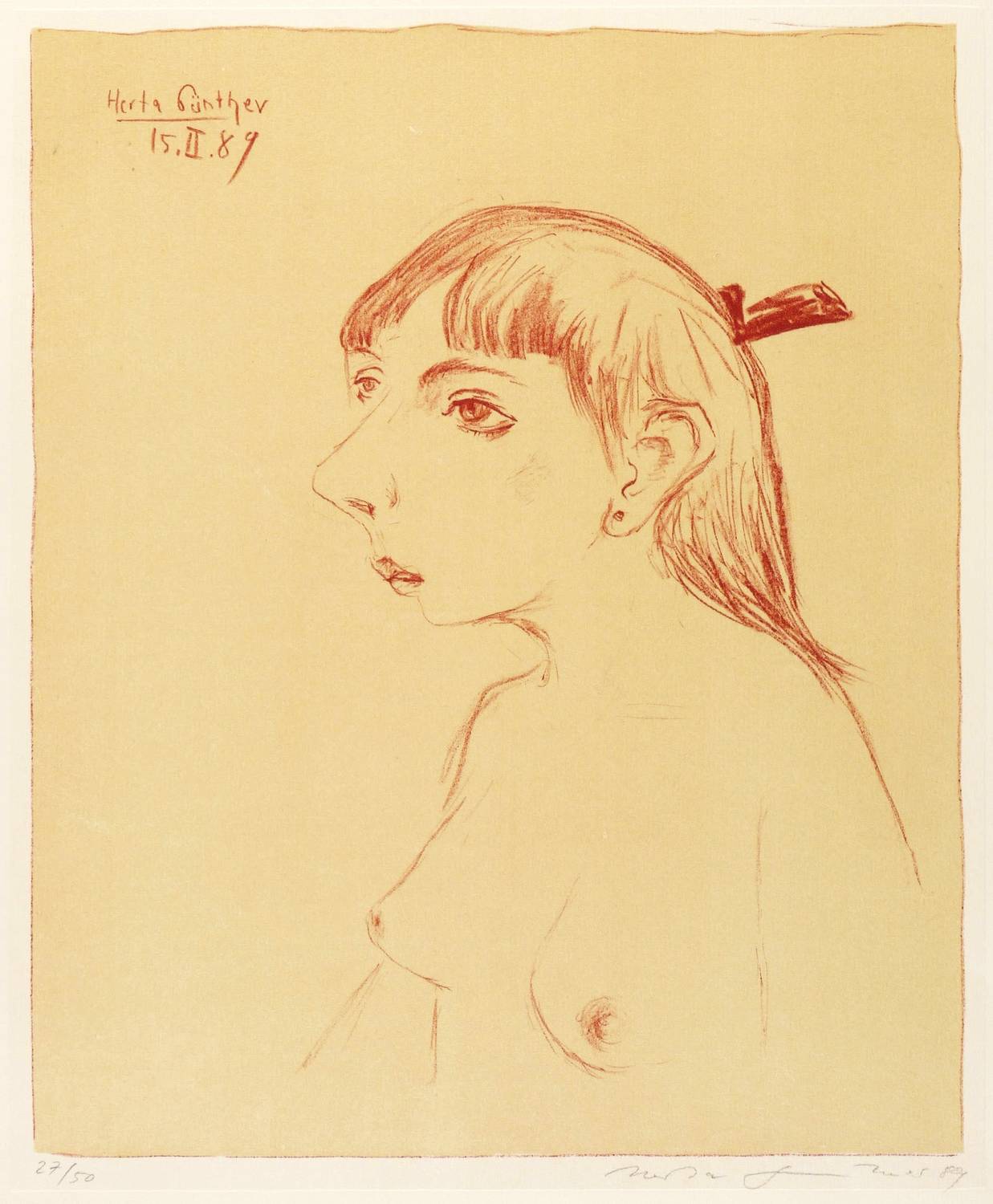 1989. Farblithografie / Kreidelithografie, in 2 Farben, auf hellchamois Maschinenbütten. – Originale Künstlergrafik, von Herta Günther. – Auflage Exemplar Nr. 27/50. – 48,8 x 40,1 cm (Darstellung / Druckbild), 67 x 55 cm (Blatt).