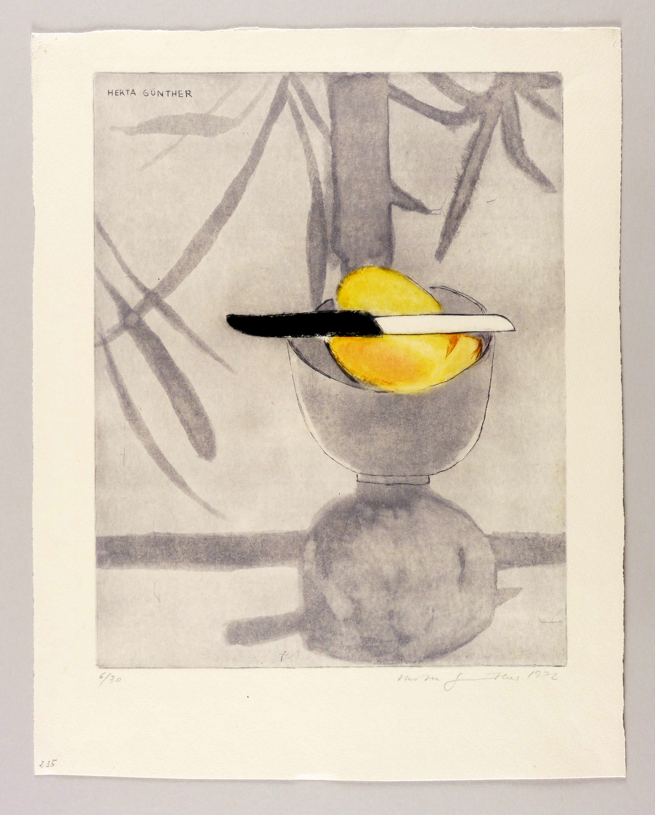 Günther, Herta. – „Stillleben mit geteilter Frucht”.