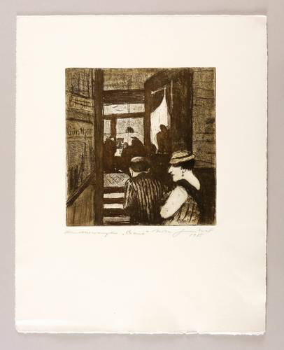 1985. Farbradierung / Vernis mou & Strichätzung, in Braun & Schwarz Farben, auf schwerem hellchamois Velin. – Originale Künstlergrafik, von Herta Günther. – Künstlerexemplar (e.a.). – 24,7 x 23,5 cm (Darstellung / Platte), 50 x 40 cm (Blatt).