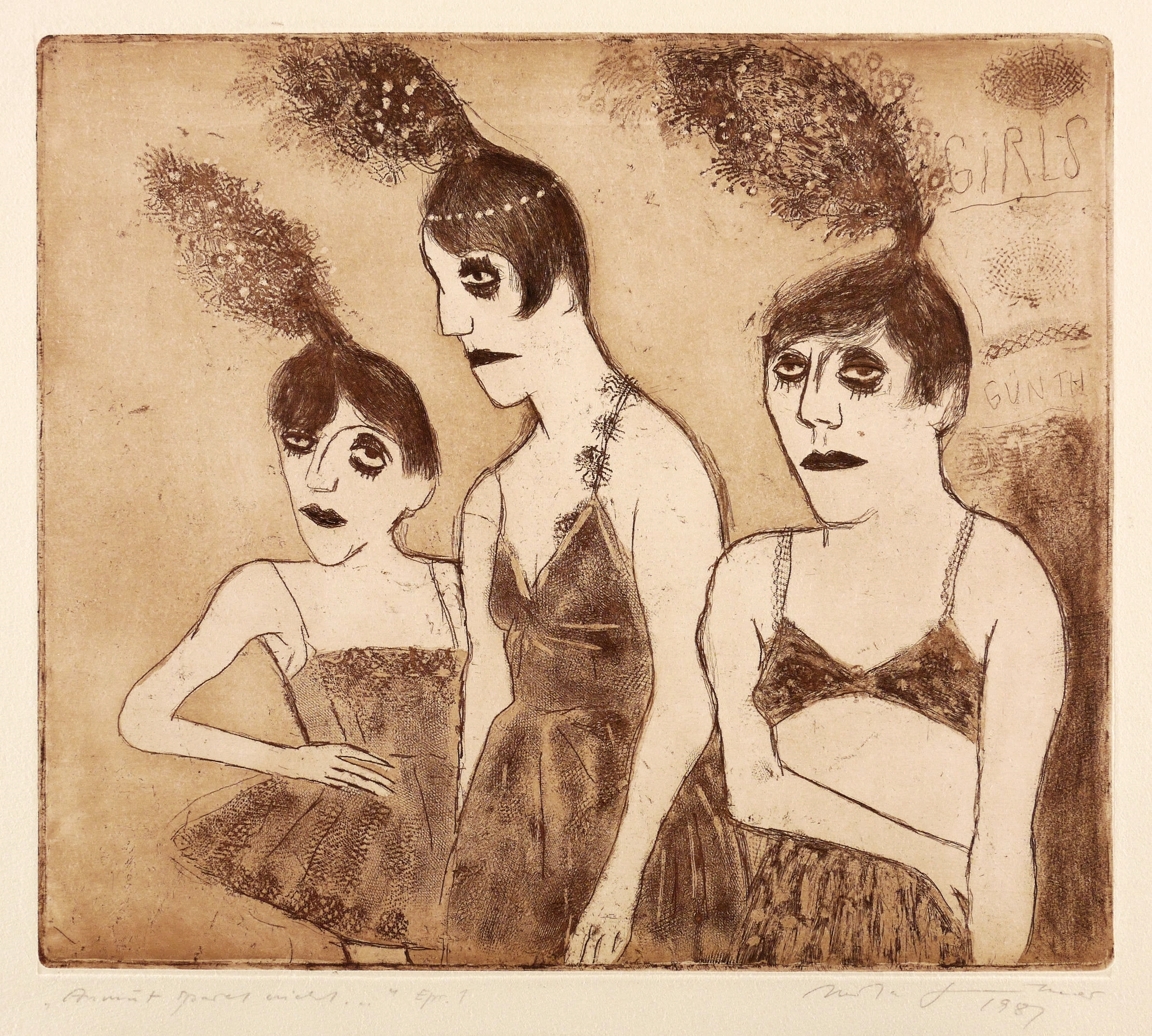 Schmidt 407. – Rechts unten in Bleistift signiert und datiert: ″Herta Günther 1981″. Links Titel und Auflagenbezeichnung: ″Anmut sparet nicht... / Epr. 1″. In der Blattecken unten rechts Werk-Nr. – Aufwändig gearbeitete excellente Radierung mit schönen Tonabstufungen, die den Eindruck von Mehrfarbigkeit erzeugen. Wichtiges druckgrafisches Werk der Künstlerin. – Tadellos. Sehr guter Zustand.