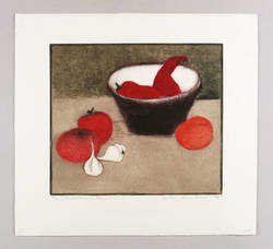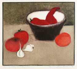 Schmidt 346. – Rechts unten in Bleistift signiert und datiert: ″Herta Günther 1977″. Links Auflagenbezeichnung und Titel: ″5/20 // Stilleben mit Paprika″. In der Blattecke rechts unten Werkverzeichnis-Nr. – Obere und untere rechte Ecke leicht angeknickt. Sonst aber guter Zustand.
