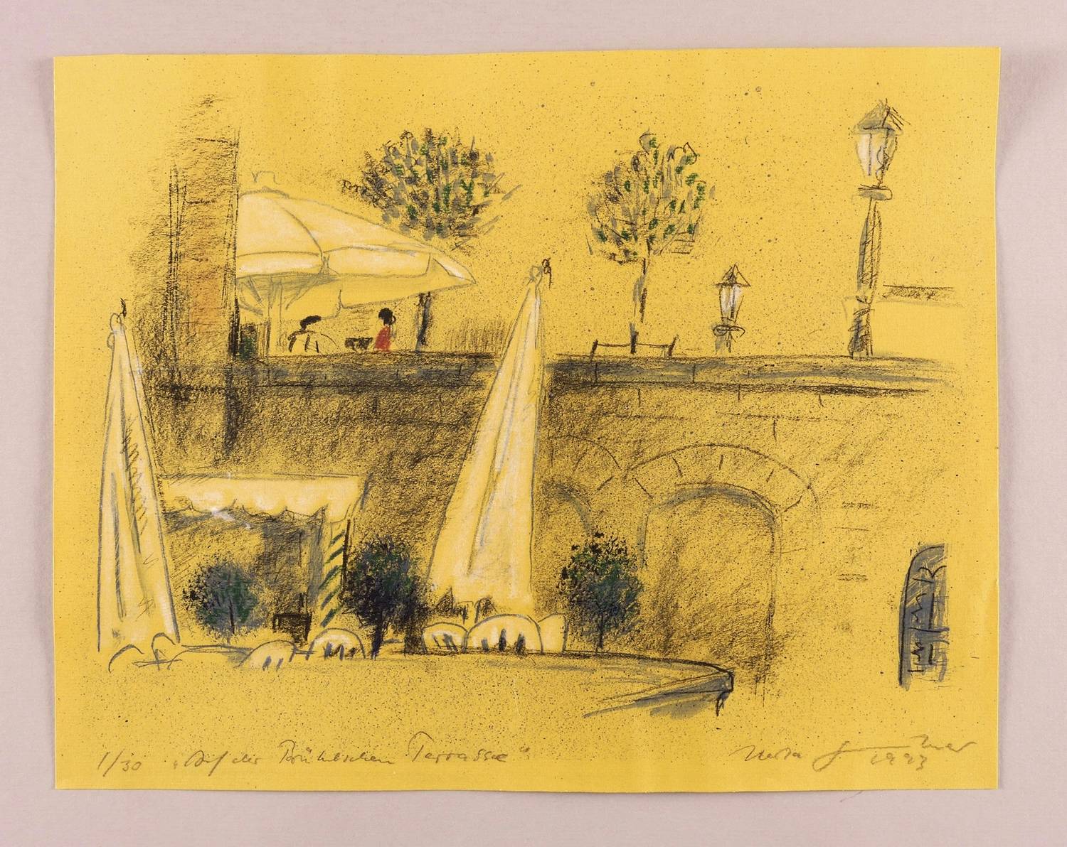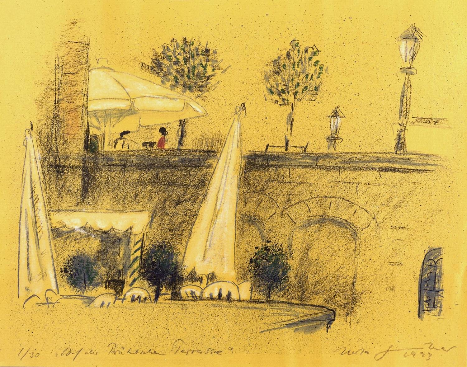 Rechts unten in Bleistift signiert und datiert: ″Herta Günther 1993″. Links Auflagenbezeichnung und Titel: ″1/30 Auf der Brühlschen Terrasse″. – Ohne Mängel. Sehr guter Zustand.