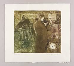 1971. Farbradierung / Reservage, Roulette & Kaltnadel, in Grün & Nussbraun, auf rauem hellchamois Velin. – Originale Künstlergrafik, von Herta Günther. – Auflage Exemplar Nr. 7/35. – 28,4 x 31,5 cm (Darstellung / Platte), 39 x 44 cm (Blatt).