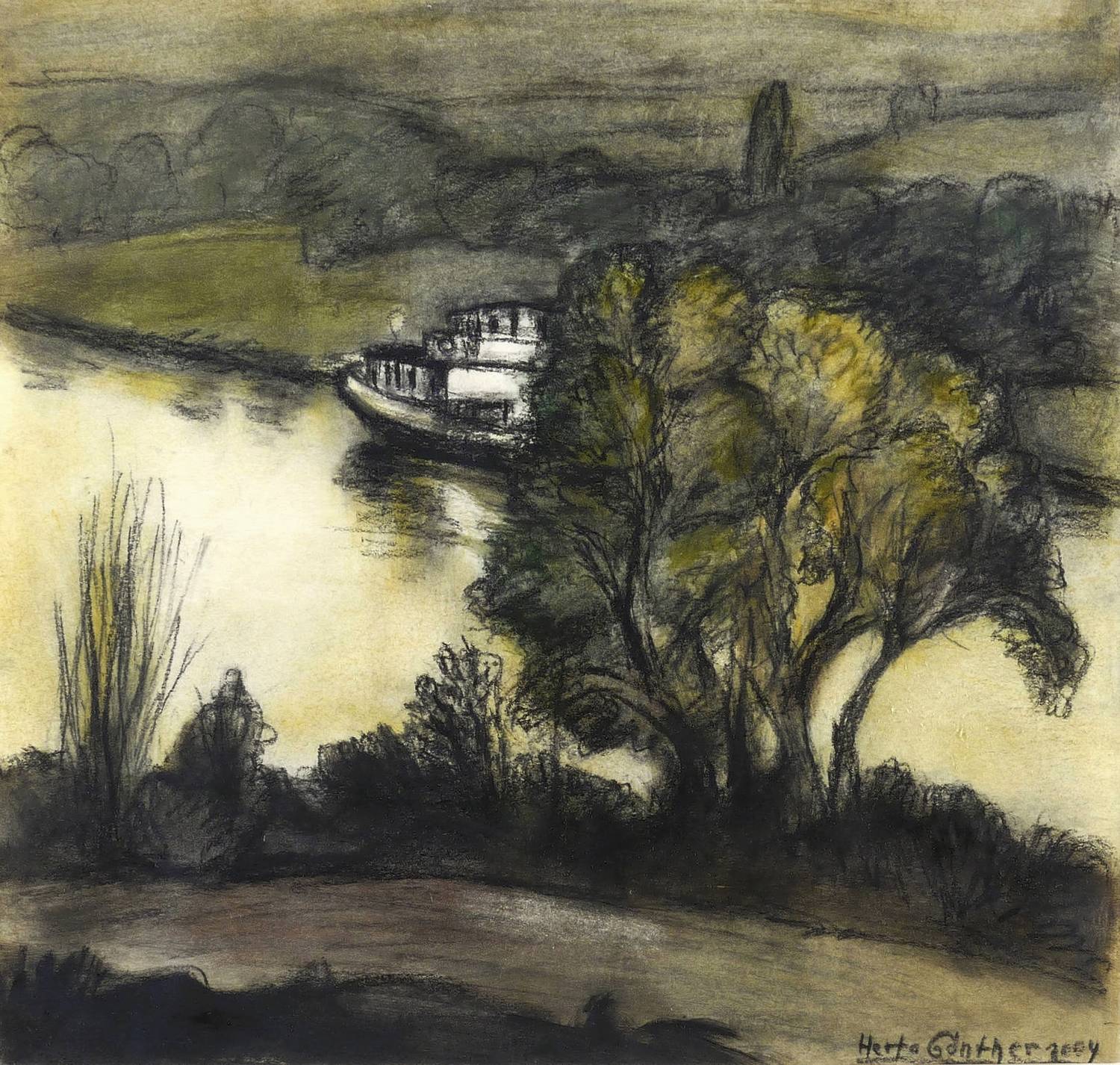 Günther, Herta. – „Elbe mit Dampfer”.