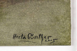 Herta Günther (1934 Dresden - 2018 Dresden). Deutsche Malerin und Grafikerin. 1951-56 Studium an der Hochschule für Bildende Künste bei Hans Theo Richter und Max Schwimmer. Seit 1956 im Verband bildender Künstler. Ab 1957 freischaffend. Zahlreiche Reisen ins Ausland. 1966 erste Einzelausstellung. 1970 eigenes Atelier im Haus des heutigen Societätstheaters Dresden. 1978 Eröffnung der Ausstellung im Glockenspielpavillon Dresden durch Dr. Fritz Löffler. 1983 Werkverzeichnis der Druckgrafik. 1989 umfangreiche Ausstellung mit Katalog im Museum Galerie Junge Kunst in Frankfurt/Oder. Herta Günther zählt zu den wichtigsten Dresdner Künstlerinnen des 20. Jahrhunderts.