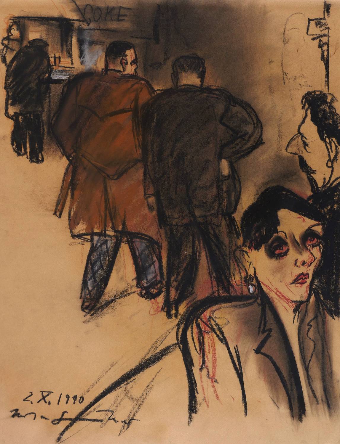 1990. Zeichnung / Pastellkreide, auf getöntem Papier. – Originale Künstlergrafik, von Herta Günther. – Unikat. – 65,0 x 50,0 cm (Darstellung / Blatt), 90 x 70 cm (Passepartout).