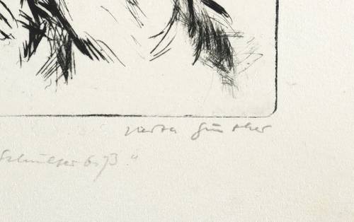 1966/1967. Radierung / Kaltnadel, in Schwarz, auf hellchamois Velin. – Originale Künstlergrafik, von Herta Günther. – Auflage Exemplar Nr. 8/10. – 14,4 x 11,5 cm (Darstellung / Platte), 24 x 19 cm (Blatt).