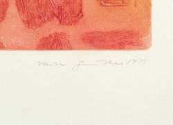 1971. Farbradierung / Reservage & Strichätzung, in Grün, Orange, Braun, Rot & Violett, auf hellchamois Velin. – Originale Künstlergrafik, von Herta Günther. – Auflage Exemplar Nr. 9/35. – 29,7 x 22,9 cm (Darstellung / Platte), 43 x 32 cm (Blatt).