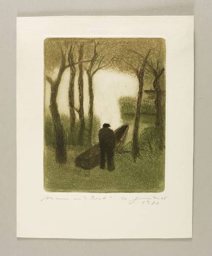 Schmidt 399. – Rechts unten in Bleistift signiert und datiert: ″H. Günther 1980″. Links Titel: ″Mann mit Boot″. – Eigenhändiger Abzug der Künstlerin. Von dieser Platte existiert nur eine Auflage von 10 Exemplaren und eine nicht bekannte Anzahl von Zustandsdrucken. – Sehr guter Zustand.
