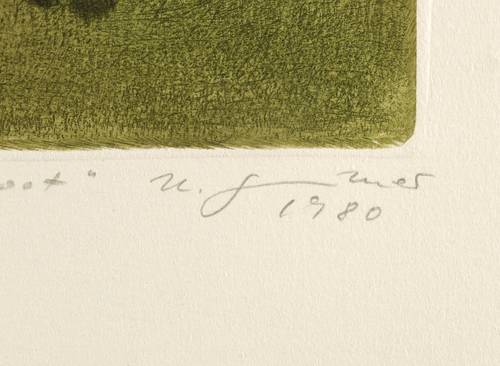 1980. Farbradierung / Vernis mou & Kaltnadel, in 5 Farben, auf hellchamois Velin. – Originale Künstlergrafik, von Herta Günther. – Zustandsdruck. – 19,2 x 15,0 cm (Darstellung / Platte), 28 x 22 cm (Blatt).