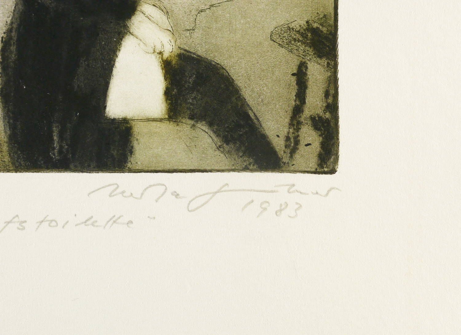Schmidt 437. – Rechts unten in Bleistift signiert und datiert: ″Herta Günther 1983″. Links Auflagenbezeichnung und Titel: ″24/50 'Bahnhofstoilette'″. Wasserzeichen der Hahnemühle. – Ohne Tadel. Sehr guter Zustand.